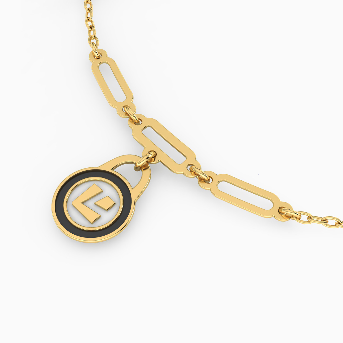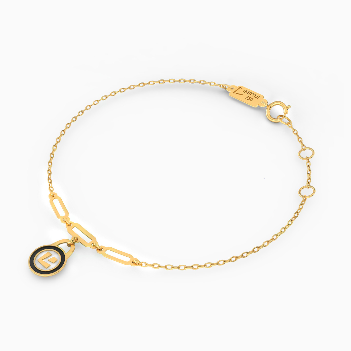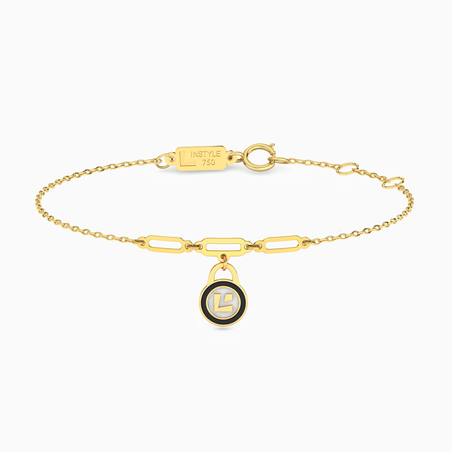 Put on this bracelet from L'azurde Instyle as a symbol of sophistication everywhere you go. Designed with an iconic L' engraved on a unique black and white lock motif, this 18-karat yellow gold number will make a fitting choice for a minimal look. Wear yours solo with a classy dress or suit and it will transition with you from day to evening.