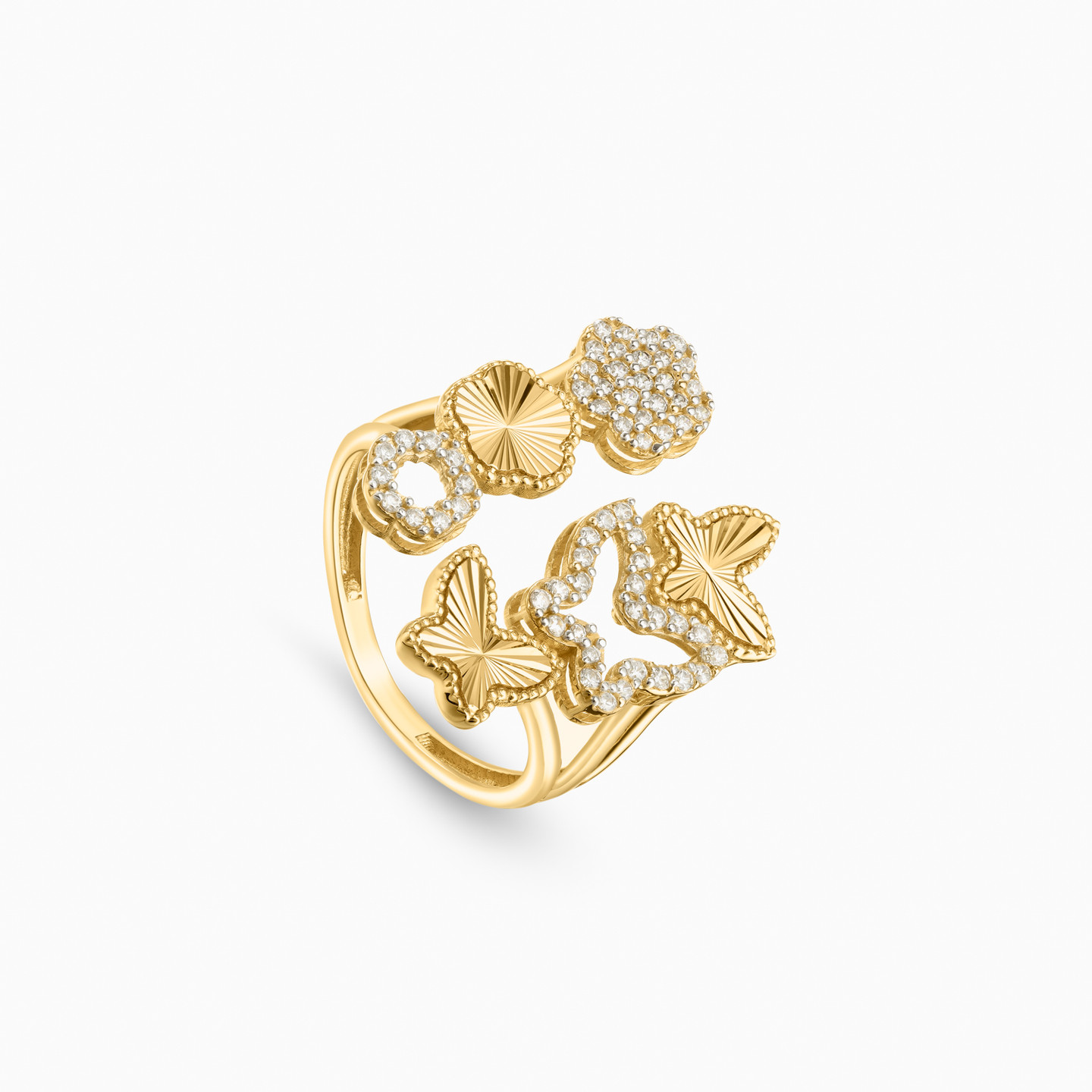 خاتم ذهب فراشة عيار 18 قيراط مزين بأحجار الزركون