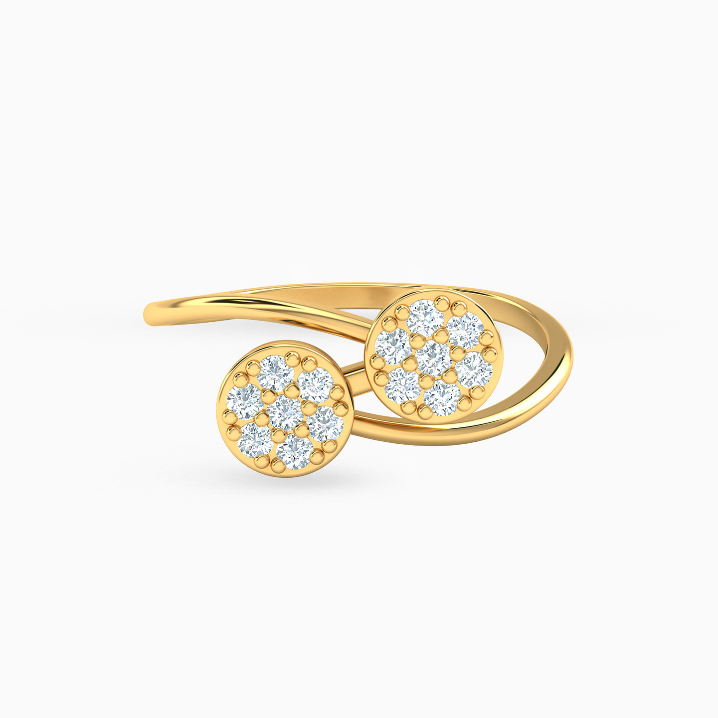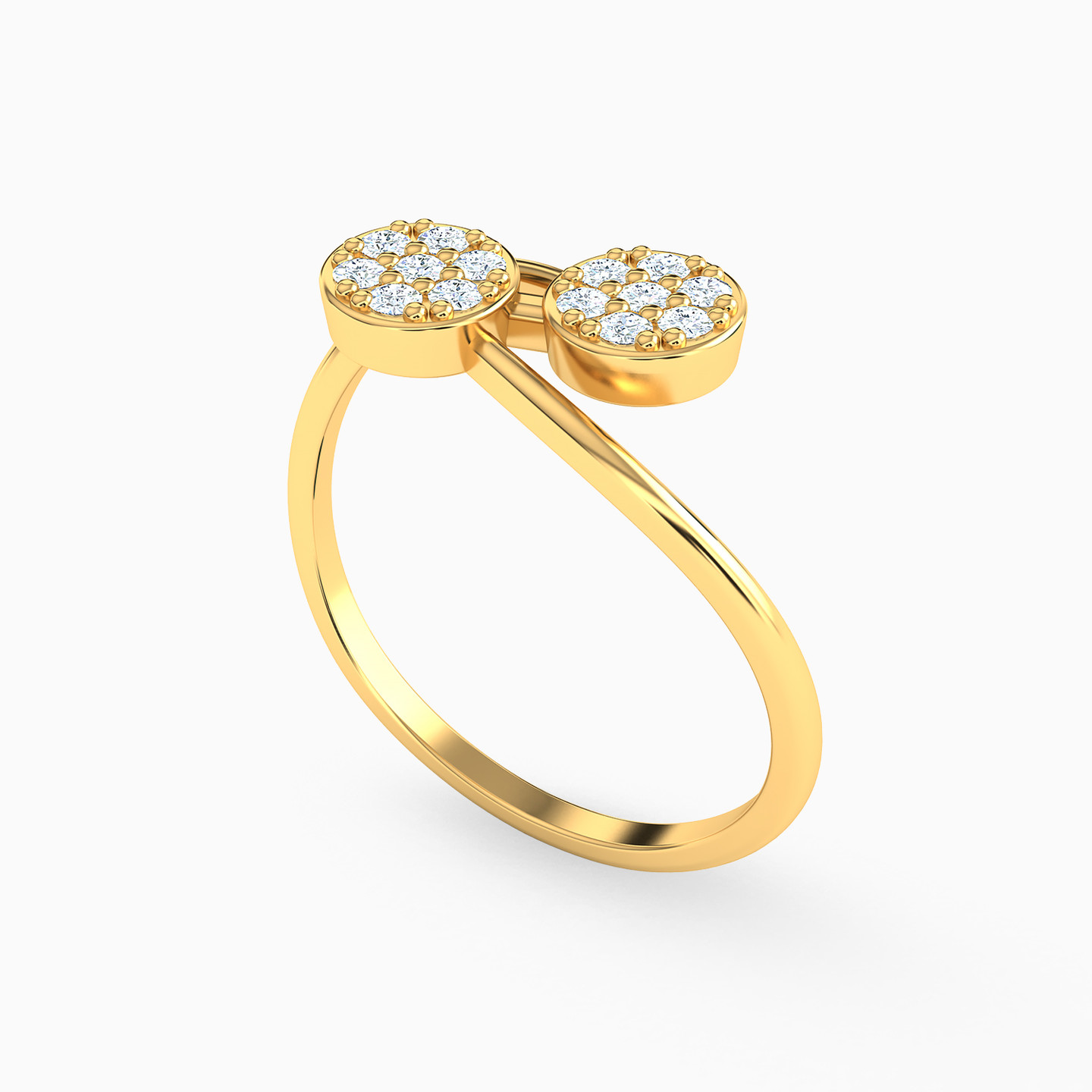خاتم برأس مزدوجة ذهب زهرة عيار 18 قيراط مزين بأحجار الزركون