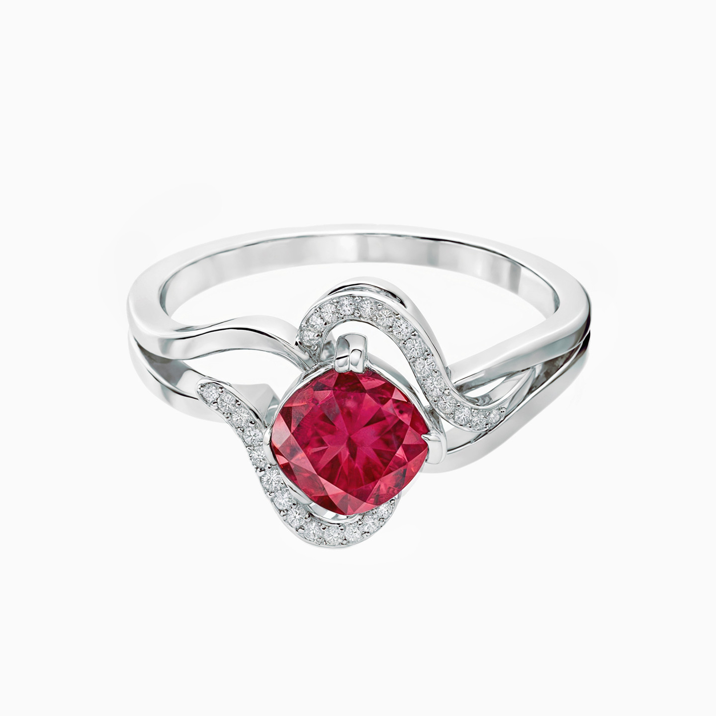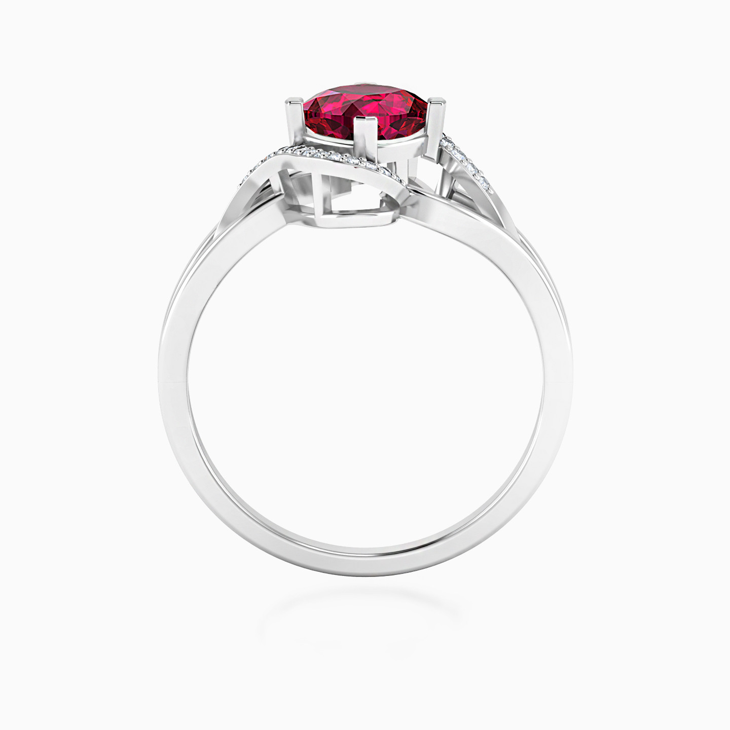 This masterpiece from L'azurde Diamonds will take you from traditional to contemporary in an instant. Cast in 18-karat white gold, it features a squarish red stone to the center, complemented with brilliant cut diamonds set on curved branches. Match your nails to this ring for a look that won't fail to impress.