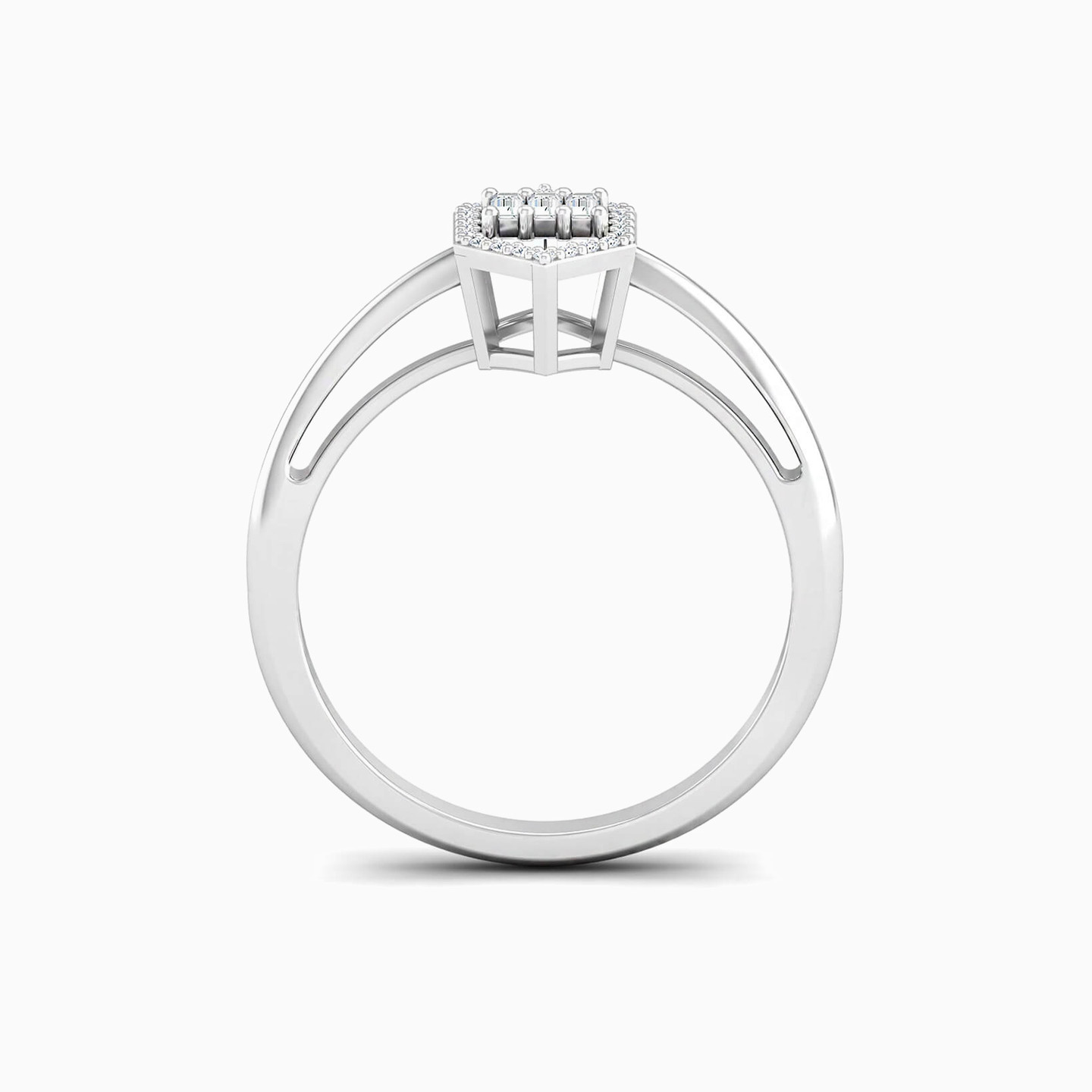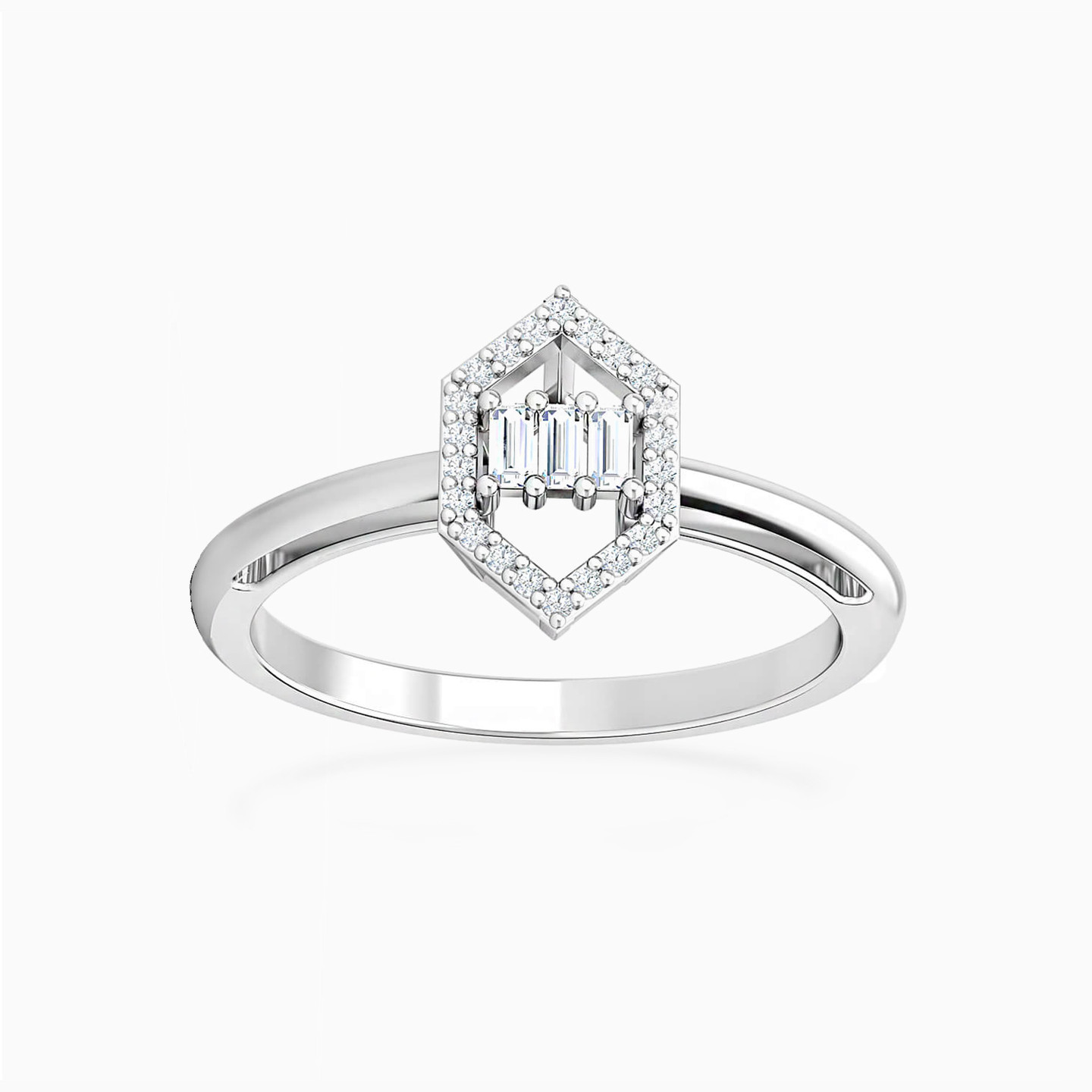 A simple yet chic ring to accent your fingers. This statement ring from L'azurde Diamonds features baguette-cut diamonds fitted beautifully within a hexagon frame lined with sparkling diamonds and along a sleek hollow band. Crafted from 18-karat white gold, this ring is perfect for adding an edge to your outfit.