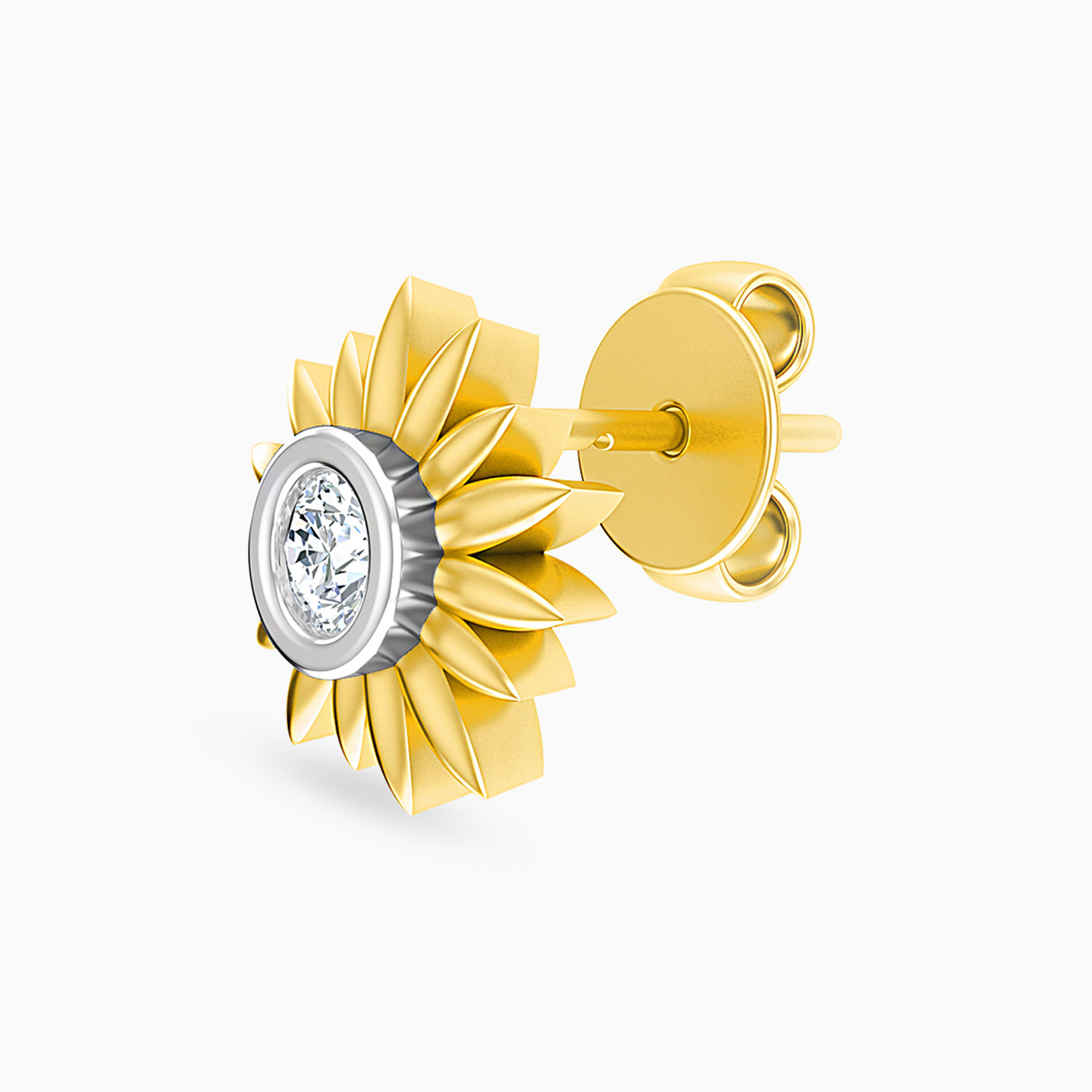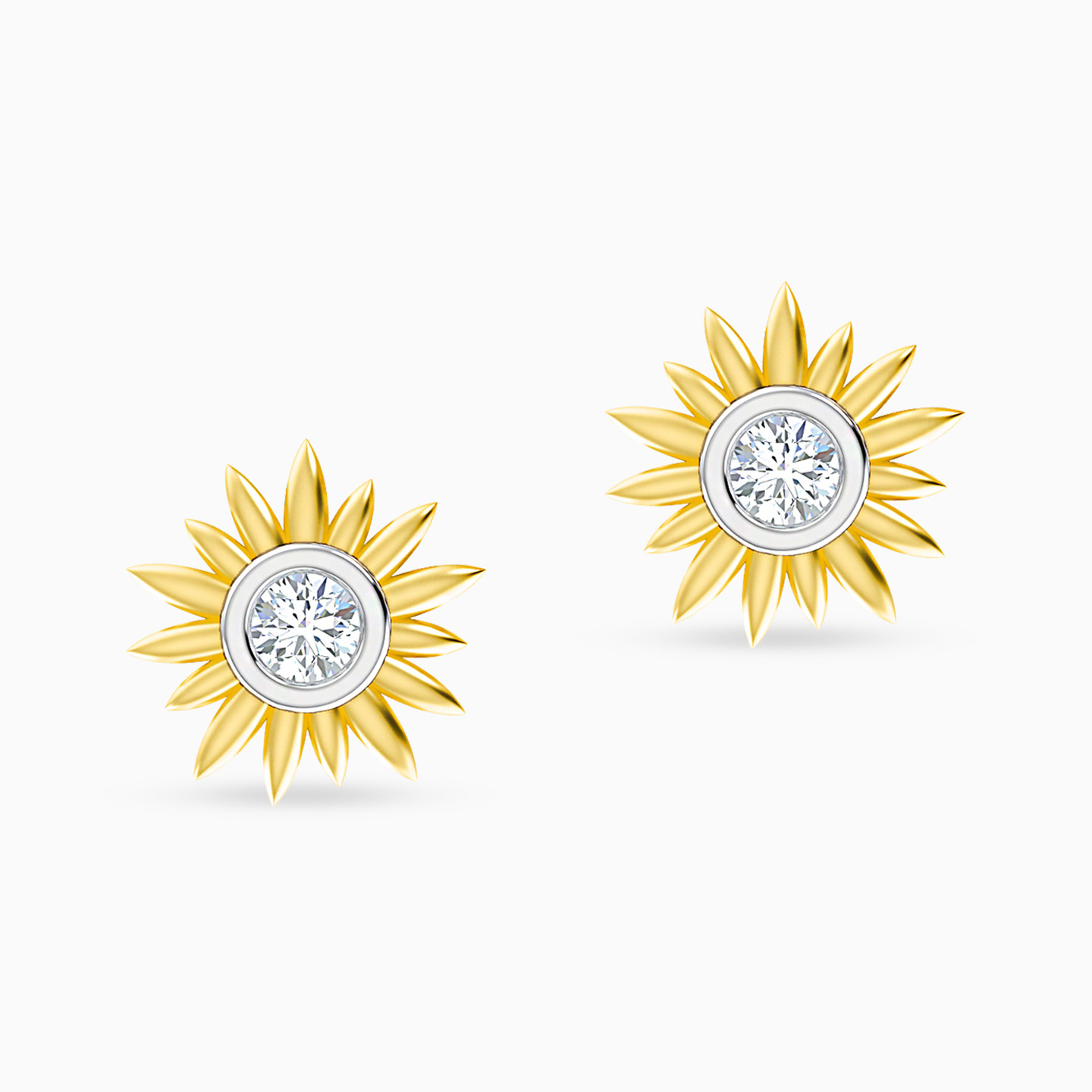 أقراط صغيرة ذهب دوار الشمس عيار 18 قيراط مزينة بالألماس