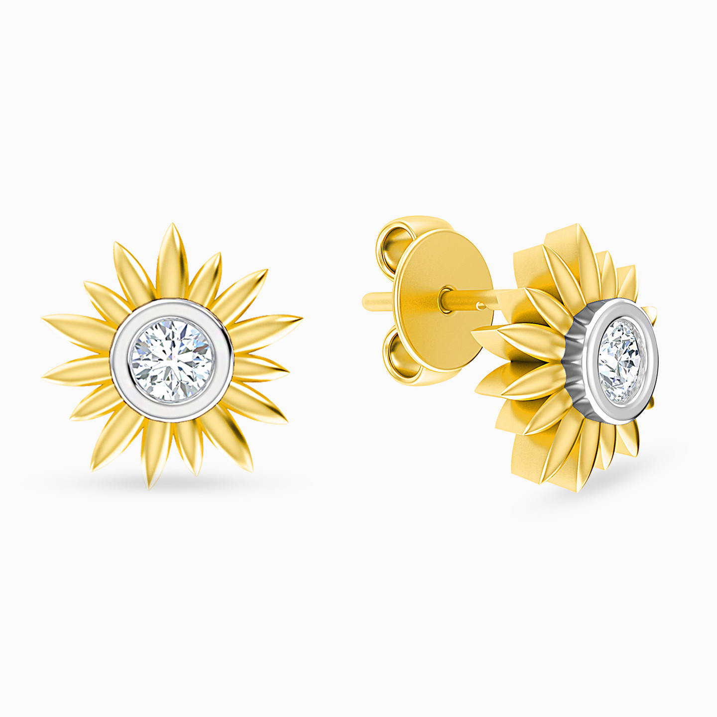 What a beauty! This pair will add effortless elegance to your everyday wardrobe. Featuring a petite brilliant cut diamond styled within a sunflower frame and cast in 18-karat yellow gold, these ear studs will match up with any day to evening outfit and look fitting on their own or paired with a matching necklace.