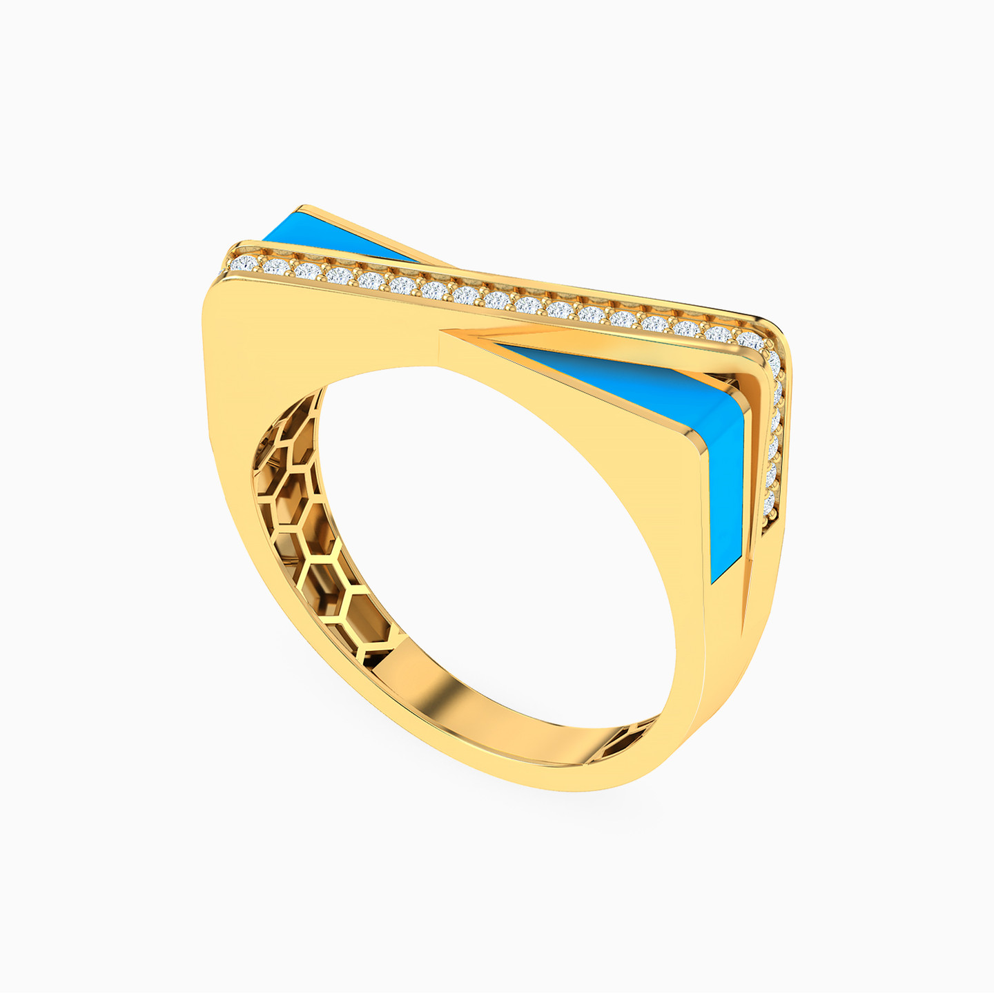 خاتم ذهب مستطيل عيار 18 قيراط مزين بأحجار الزركون ومطلي بالمينا