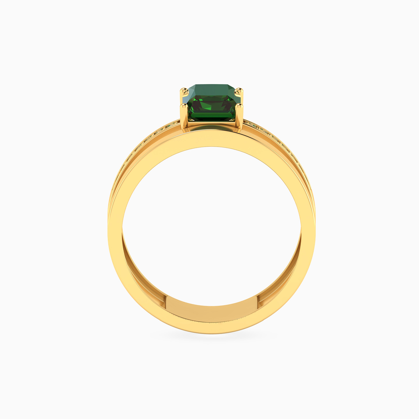 خاتم مزدوج شكل مستطيل ذهب عيار 18 قيراط مزين بحجر أخضر