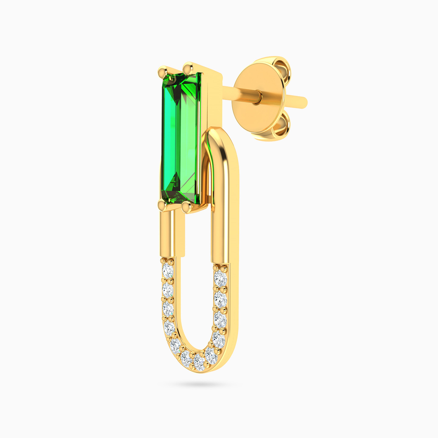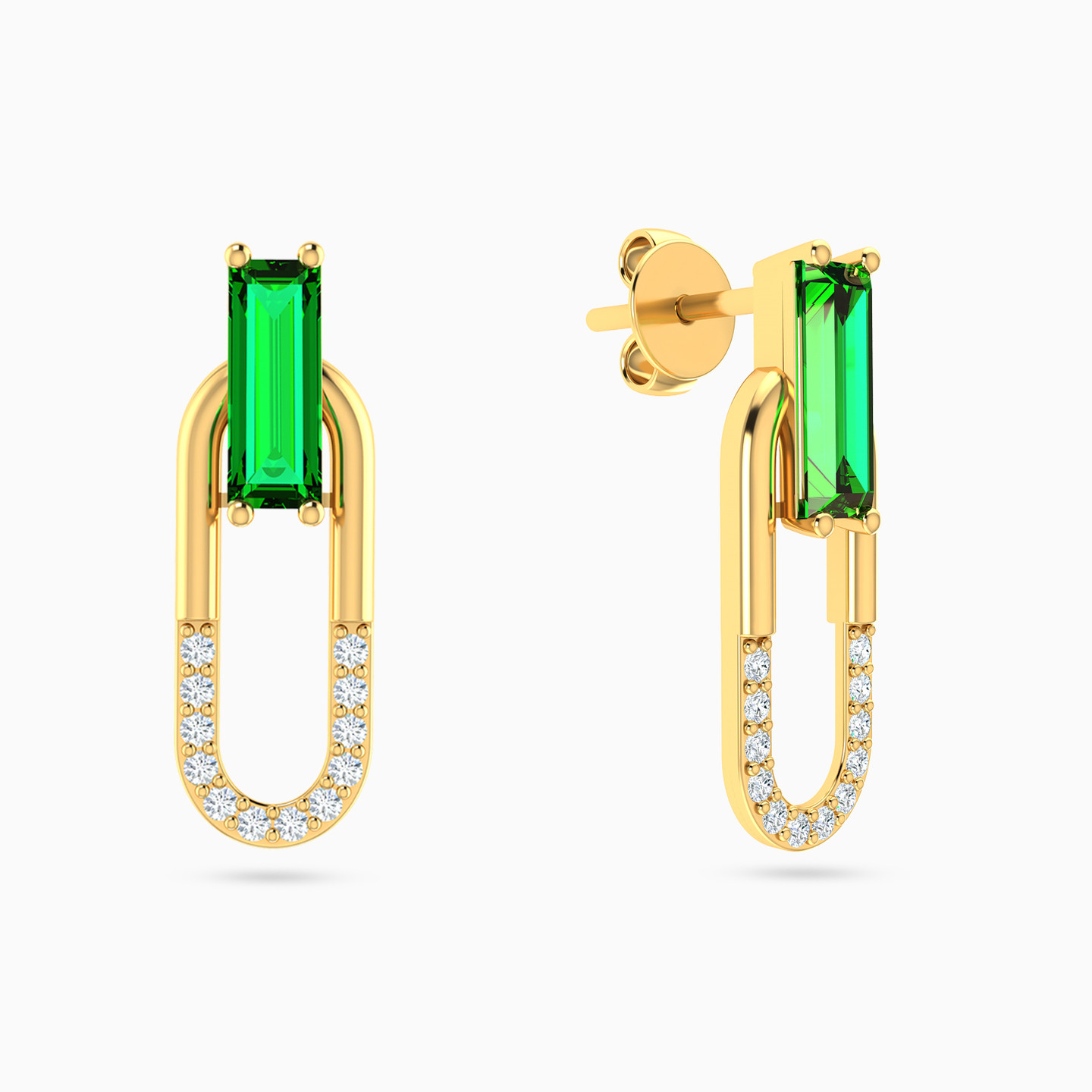 أقراط صغيرة ذهب باجيت عيار 18 قيراط مزينة بحجر أخضر