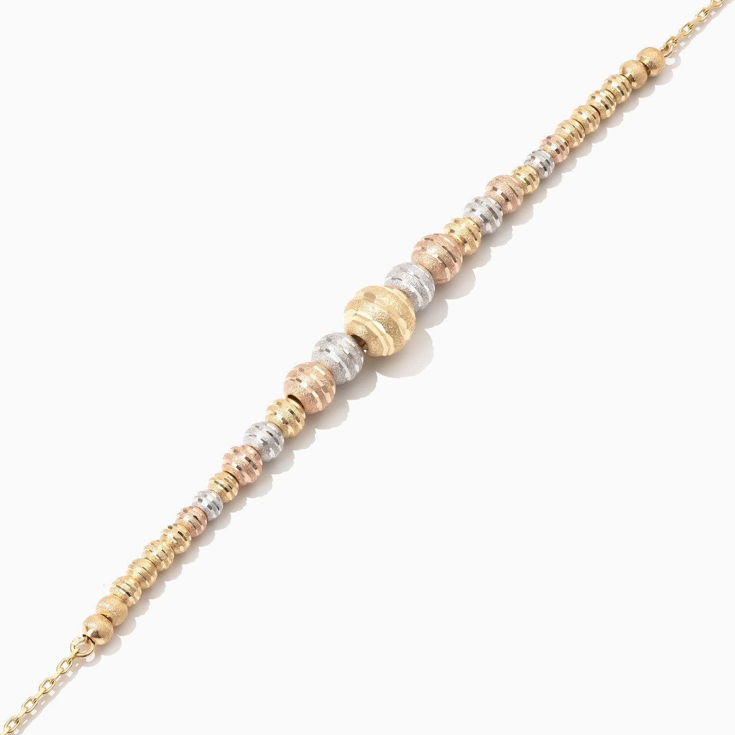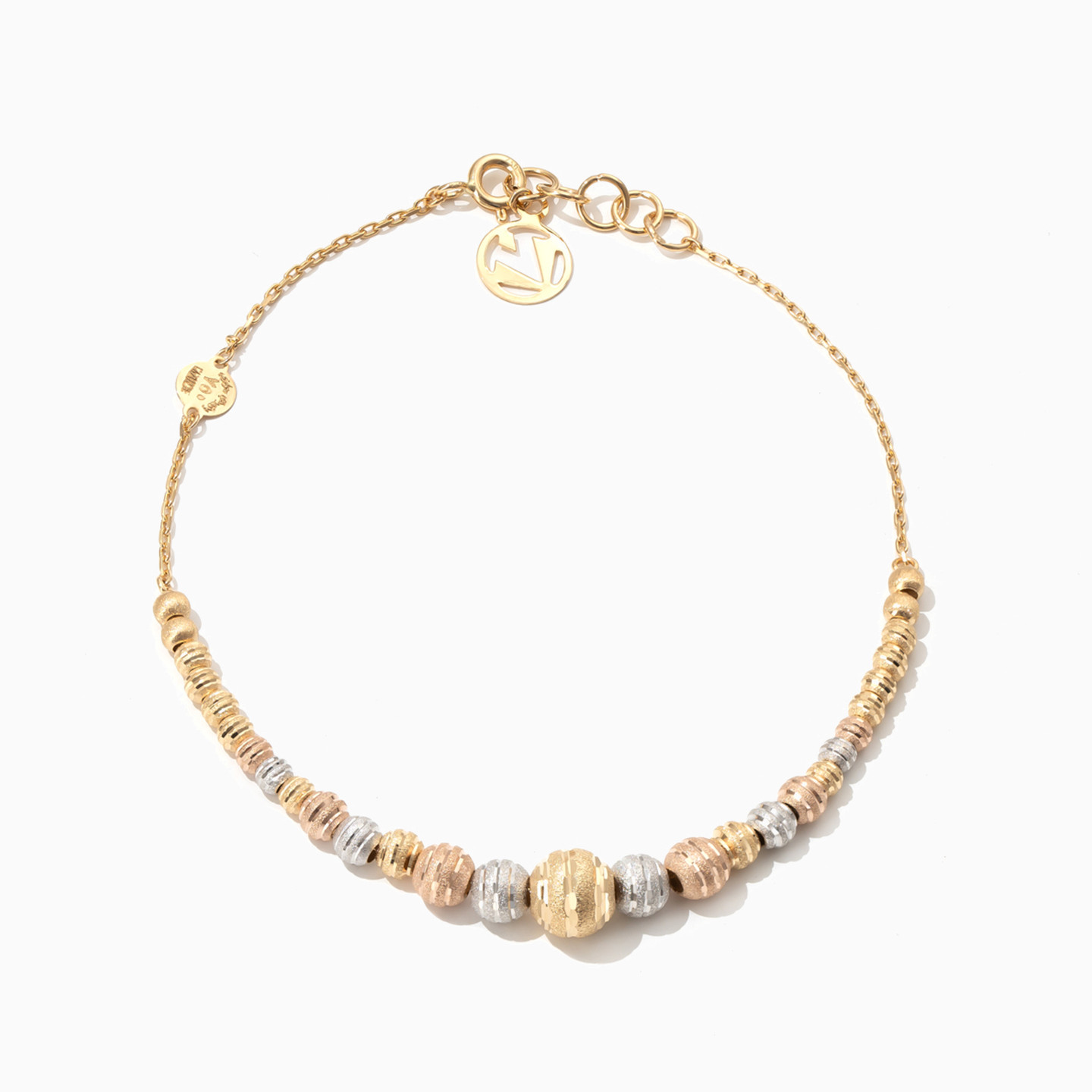 You'll look sweet and sophisticated when wearing this classy chain bracelet from L'azurde Gold. Dotted with gorgeous 18-karat yellow, white, and rose gold beads, this chic bracelet has timeless elegance. We love how this bracelet is the only accessory you need to add femininity to any look.