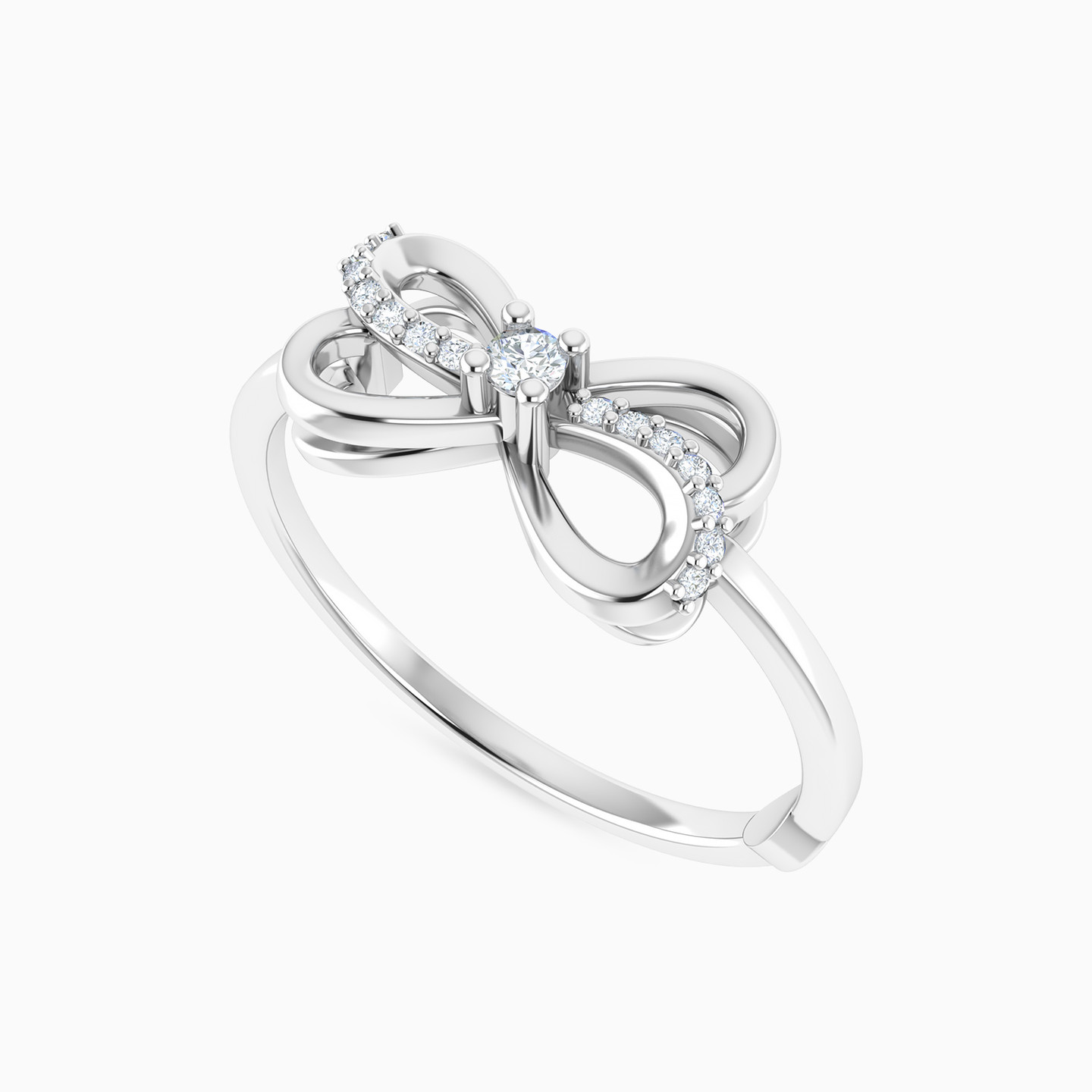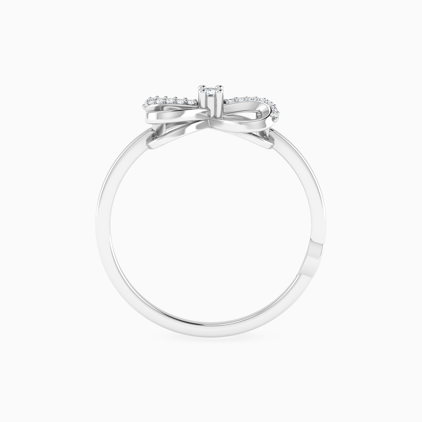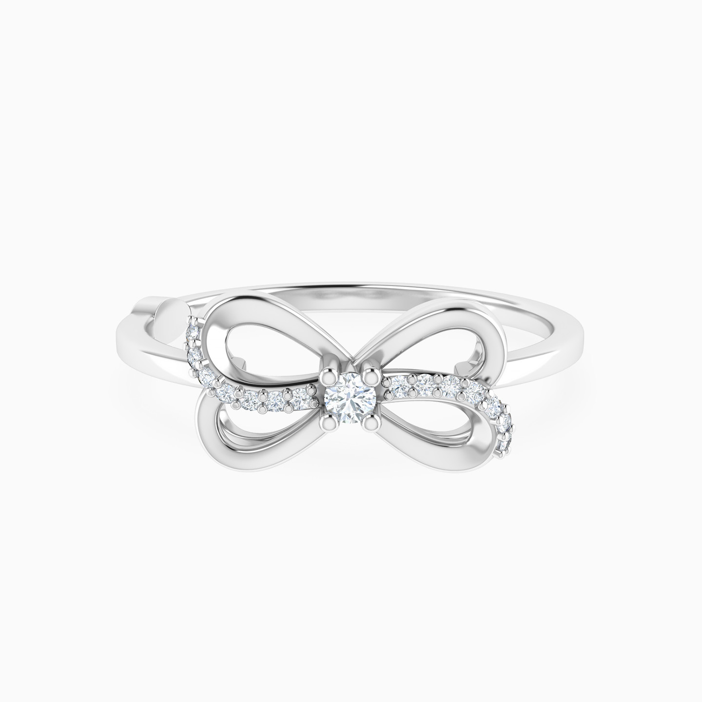 Delicate charm with graceful lines. This Lazurde Diamonds ring in white gold features an elegant bow motif, its curves highlighted with pavé-set diamonds and centered with a single brilliant diamond. A refined design that adds a touch of playful sophistication.