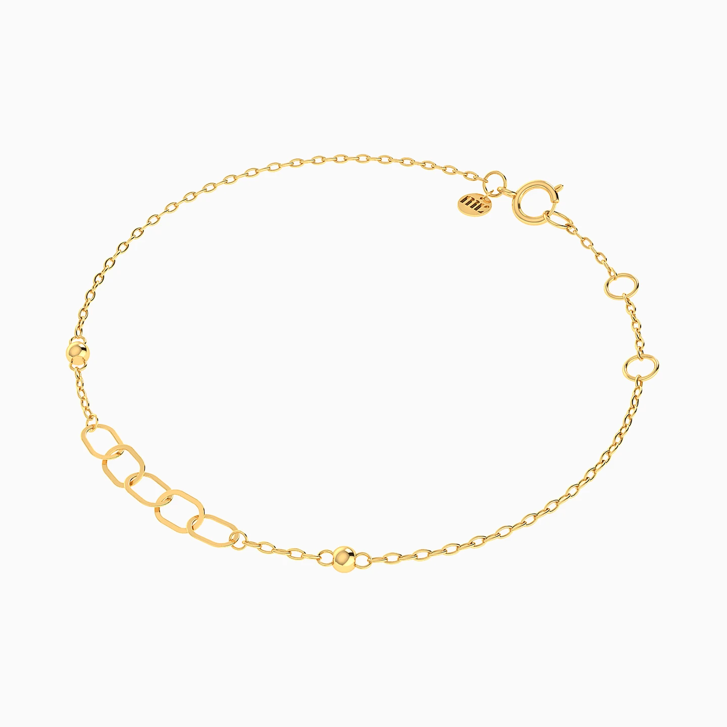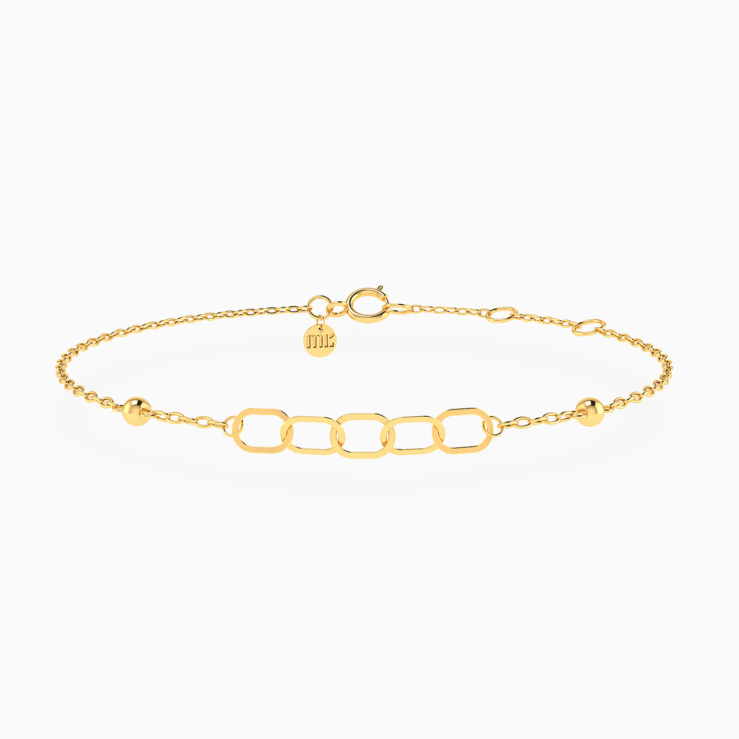 Add sparkle to your collection with this cute piece from Miss L'! This stunning 18K yellow gold chain bracelet features a minimalist design with open chains, ready for you to add your favorite charms. Whether you choose to customize it with personal touches or keep it simple, this bracelet offers endless possibilities for creating a unique look. A perfect combination of elegance and versatility, it’s an essential addition to your jewelry collection.