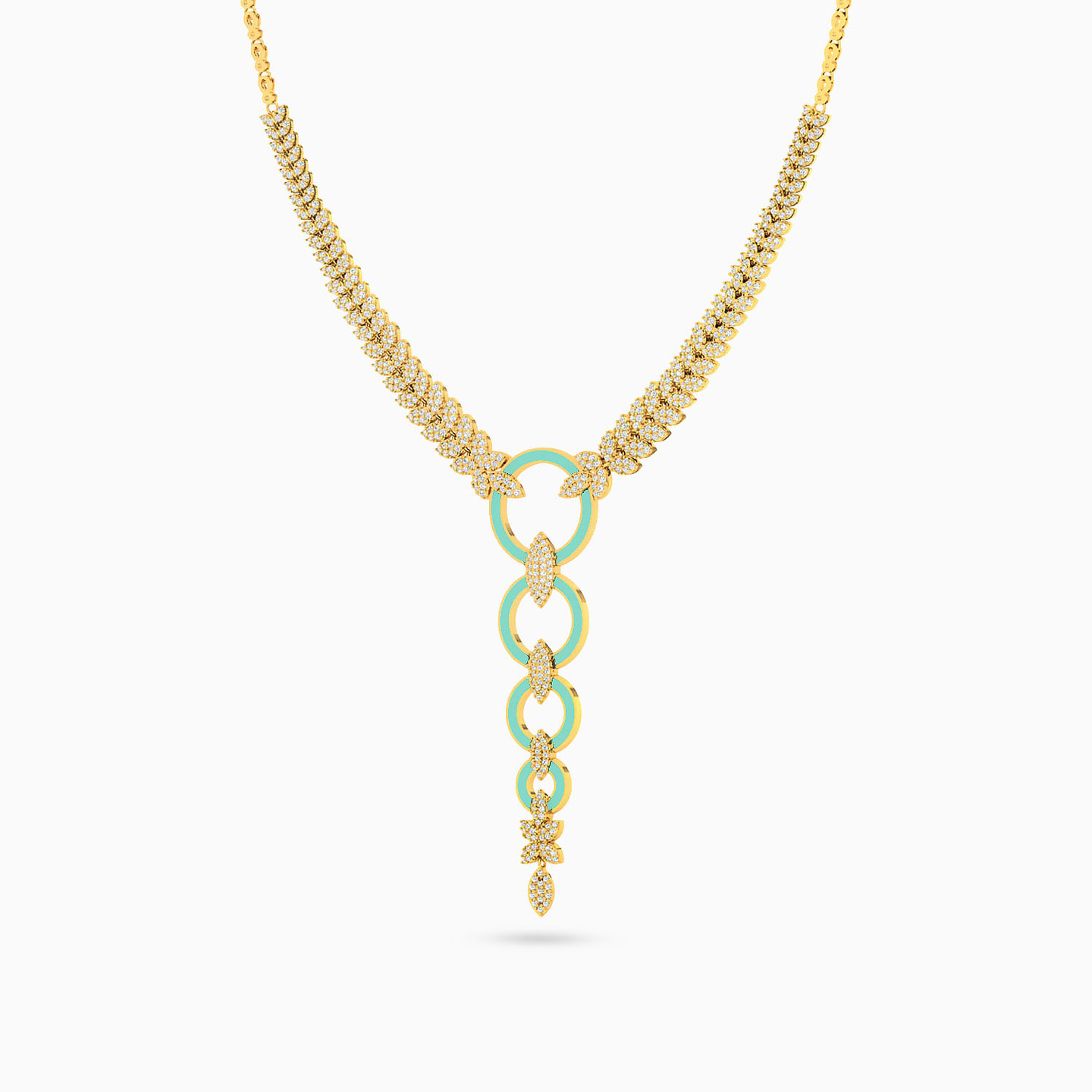 سلسلة ذهب دائرية عيار 18 قيراط مزينة بأحجار الزركون ومطلية بالمينا