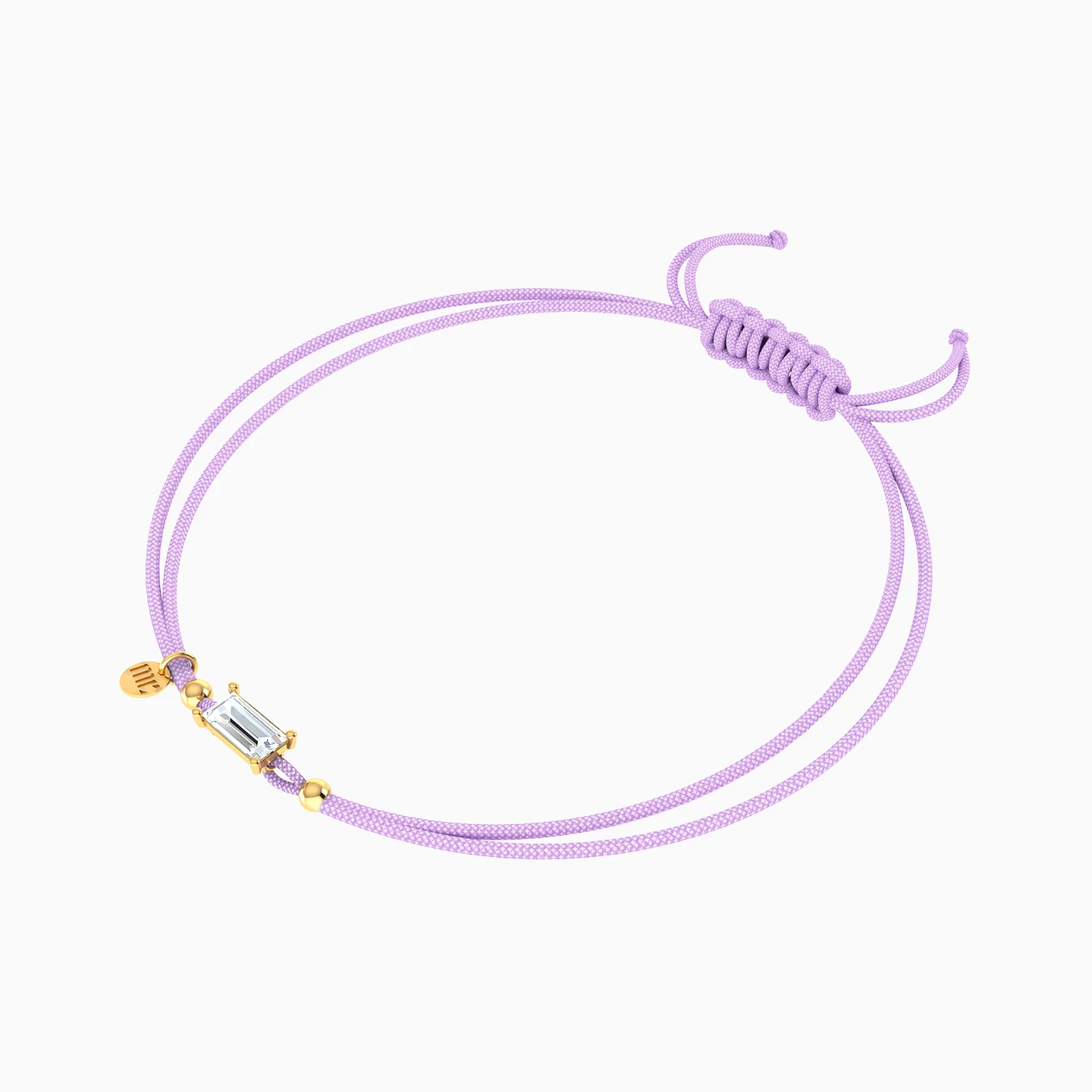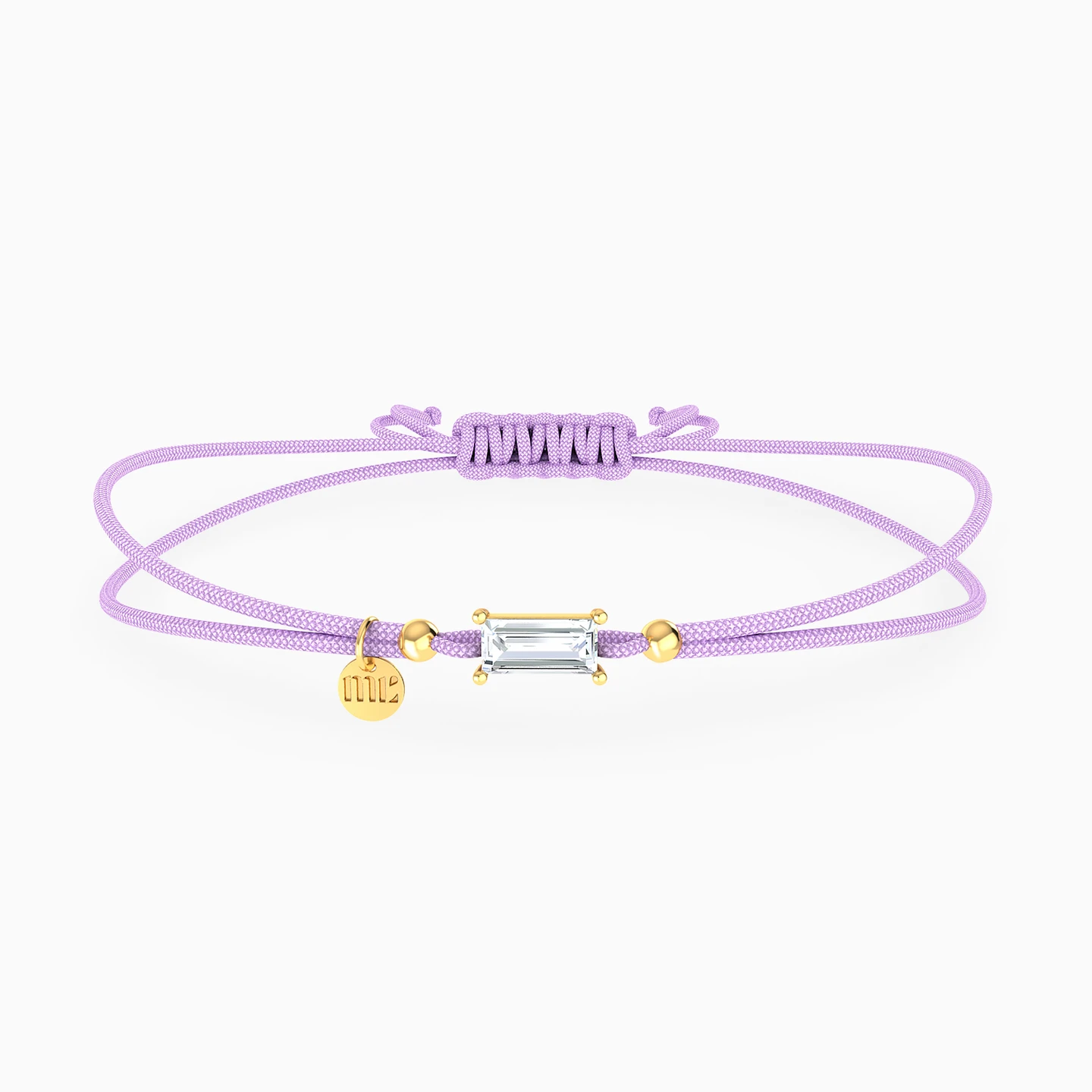 Wrap your wrist in a soothing lavender embrace with this bracelet from Miss L' - the perfect blend of serenity and style! The adjustable slide clasp ensures a fit as customizable as your mood, while the centerpiece steals the show with a sparkling baguette-shaped colored stone, radiating elegance. Flanked on either side by 14-karat yellow gold beads, this bracelet is a delightful symphony of color, sparkle and charm, making it the go-to accessory for your everyday moments of bliss!