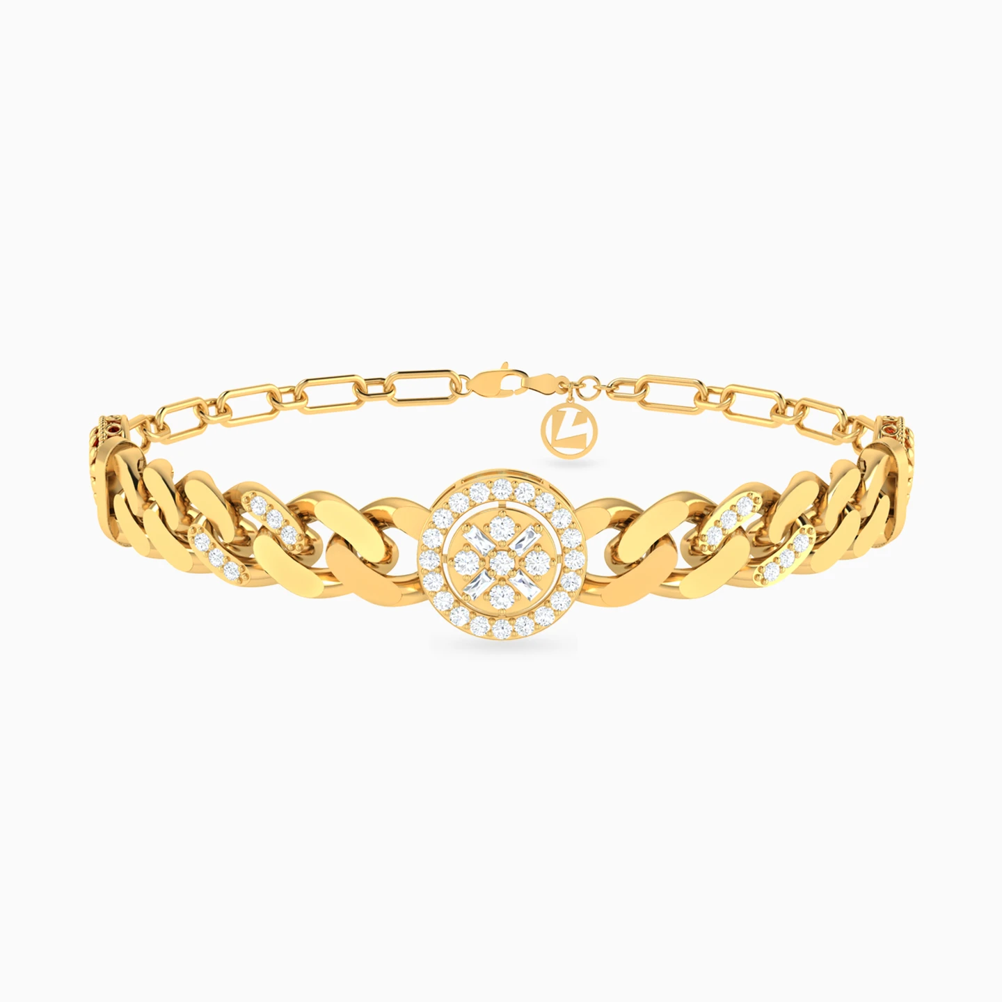 Here it is—your new go-to jewelry set from L'azurde Gold for elevating a little black dress or your favorite outfit. Crafted in 18-karat yellow gold, this magnificent set is a stunning mix of chain and paperclip links with floral motifs on round gold medallions. An eye-catching look for day or night celebrations, this 3-piece set includes a mesmerizing chain necklace, chic statement ring and a beautiful chain bracelet shimmering with cubic zirconia accents. You’re sure to make a lasting impression when wearing this magnificent set, so be prepared for admiring glances.