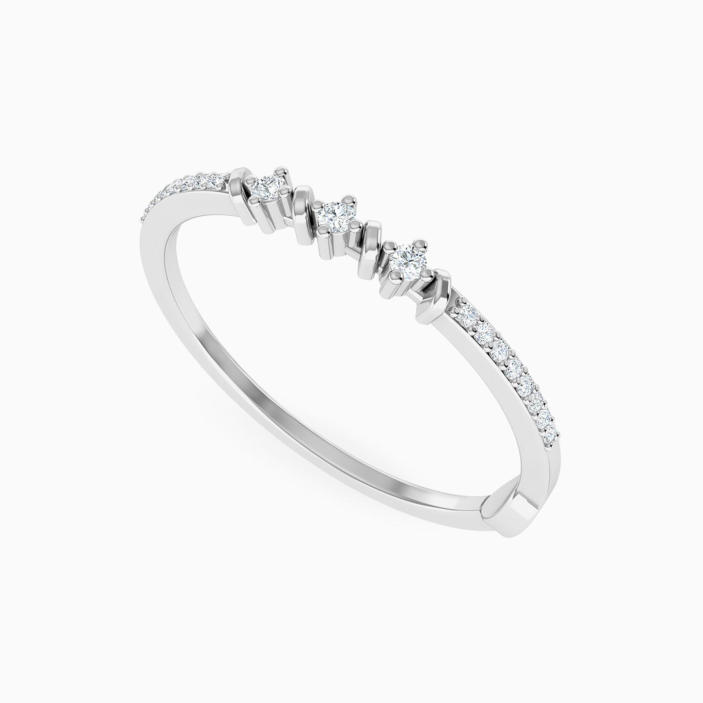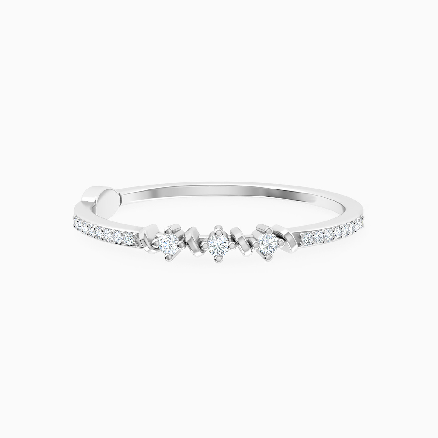 Adorn your finger with this stunning 18-karat white gold statement ring from L'azurde Diamonds, a perfect blend of sophistication and sparkle. The sleek ring is elegantly studded with brilliant cut diamonds and further accentuated by three central diamonds set on four prongs, alternating with sleek bars. This exquisite piece radiates timeless elegance, making it an essential addition to any jewelry collection.