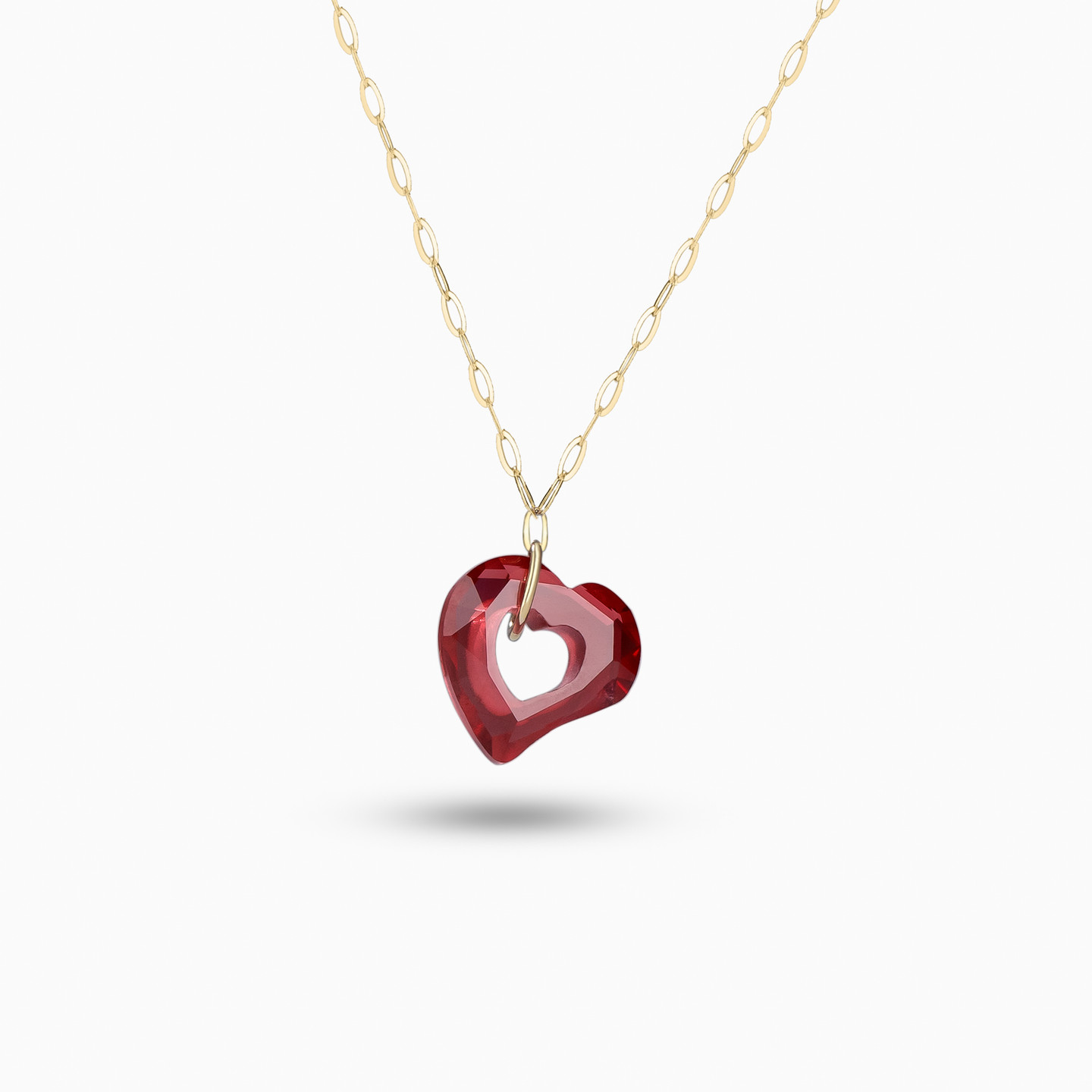 سلسلة شكل قلب محفور ذهب عيار 14 قيراط مزينة بحجر أحمر