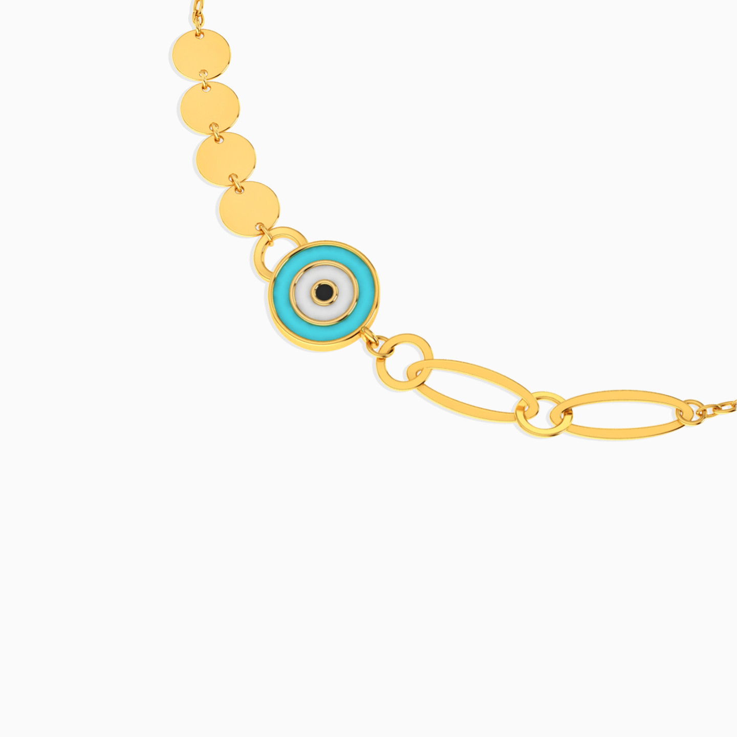 Keep the bad vibes away with this petite and pretty bracelet from L'azurde Instyle. The dainty 18-karat yellow gold chain features link and circle accents that line up to meet an evil eye motif to the center. This dainty number will sit flat on your wrist and can be styled solo or stacked with similar bracelets.