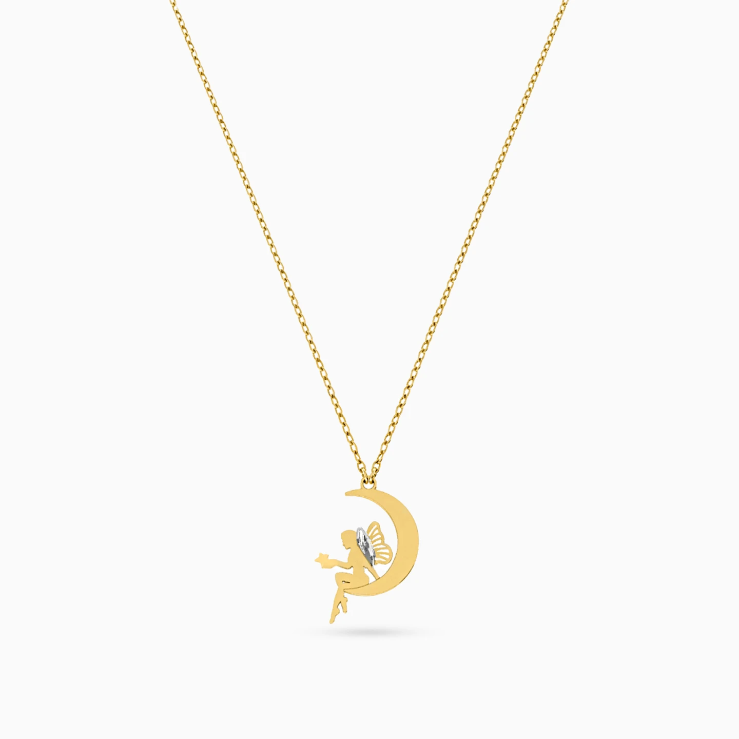 Magic begins with a wish. This dreamy necklace features a delicate fairy perched on a crescent moon, holding a star—perfect for little girls who believe in wonder and stories that sparkle. A sweet gift to celebrate childhood dreams.