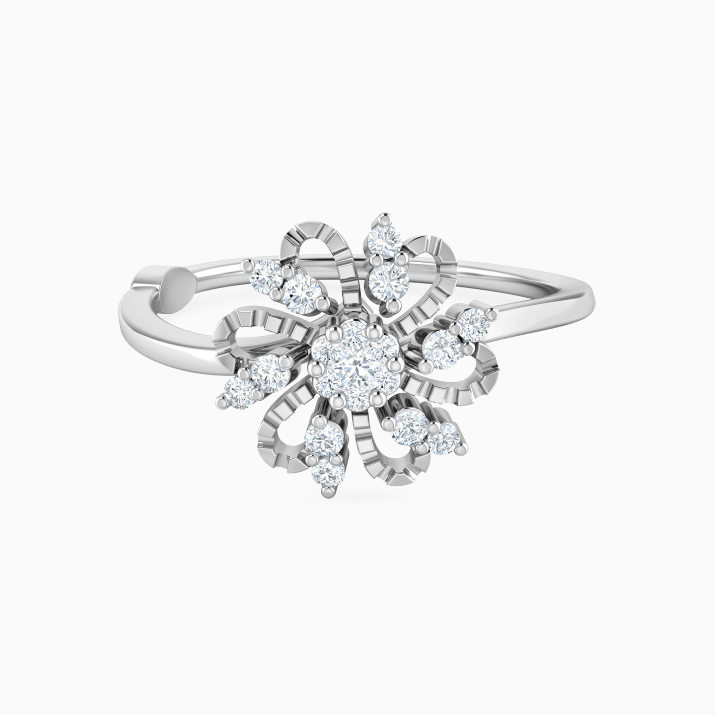 We love the sweet sophistication of this chic, nature-inspired ring from L'azurde Diamonds. Fashioned in lustrous 18-karat white gold, this glamorous ring sparkles with 0.16-carat brilliant cut diamonds in a stunning floral design with details gold petals with eye-catching diamond accents and a magnificent cluster of diamonds at the center. Whether you’re wearing a little black dress, elegant business suit or casual denim jacket, any outfit is the perfect backdrop for this piece to shine.