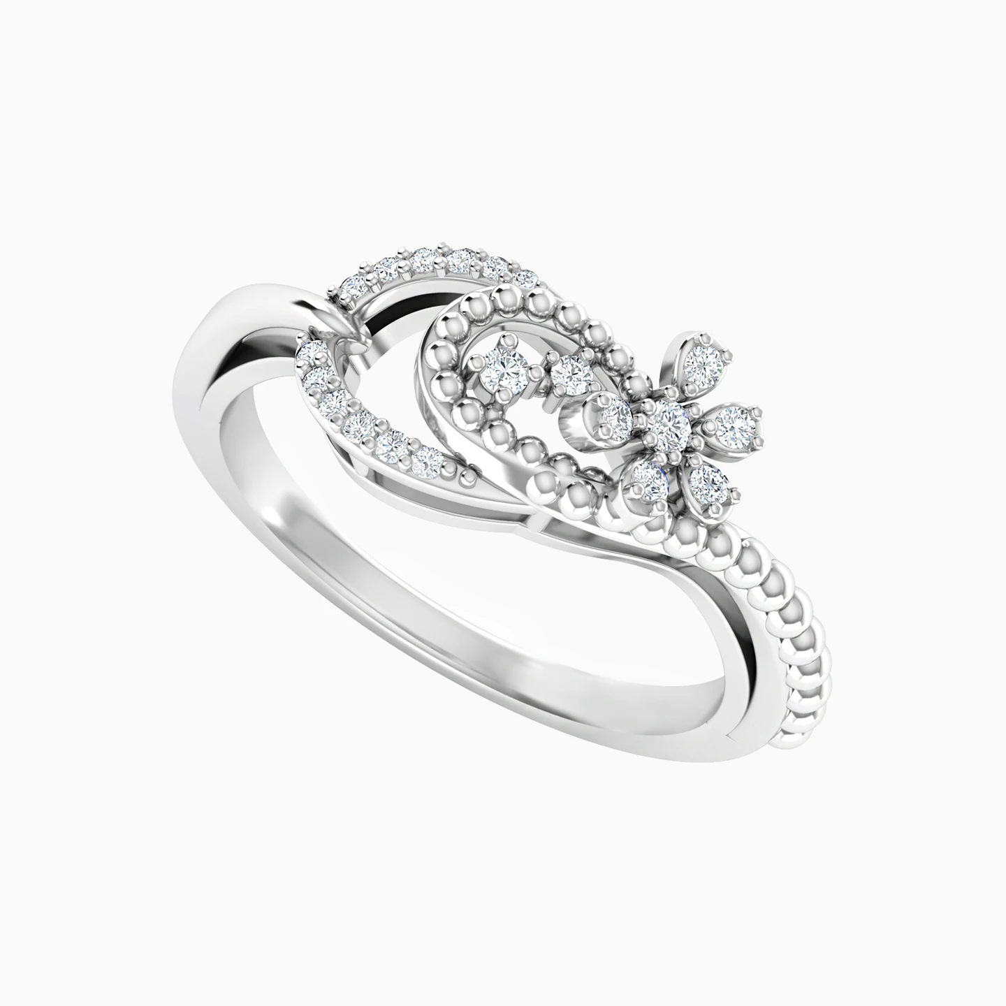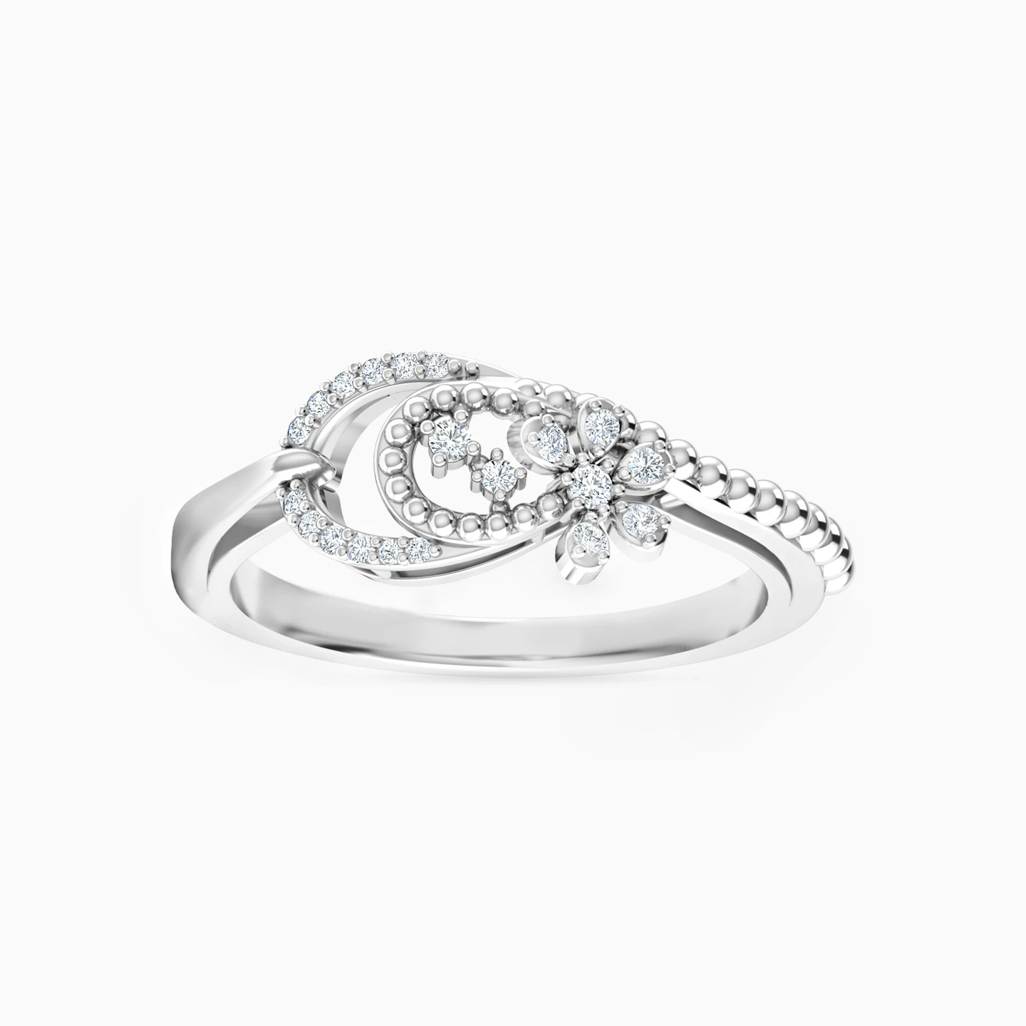 A graceful diamond buckle cinches this exquisite statement ring from L'azurde Diamonds with eye-catching style. Dazzling with brilliant cut diamonds in a floral motif and diamond lined shank, this gorgeous ring features elegant 18-karat white gold beads adding beauty to the design. Utterly feminine, this captivating piece adds the perfect finishing touch to daytime and evening looks.