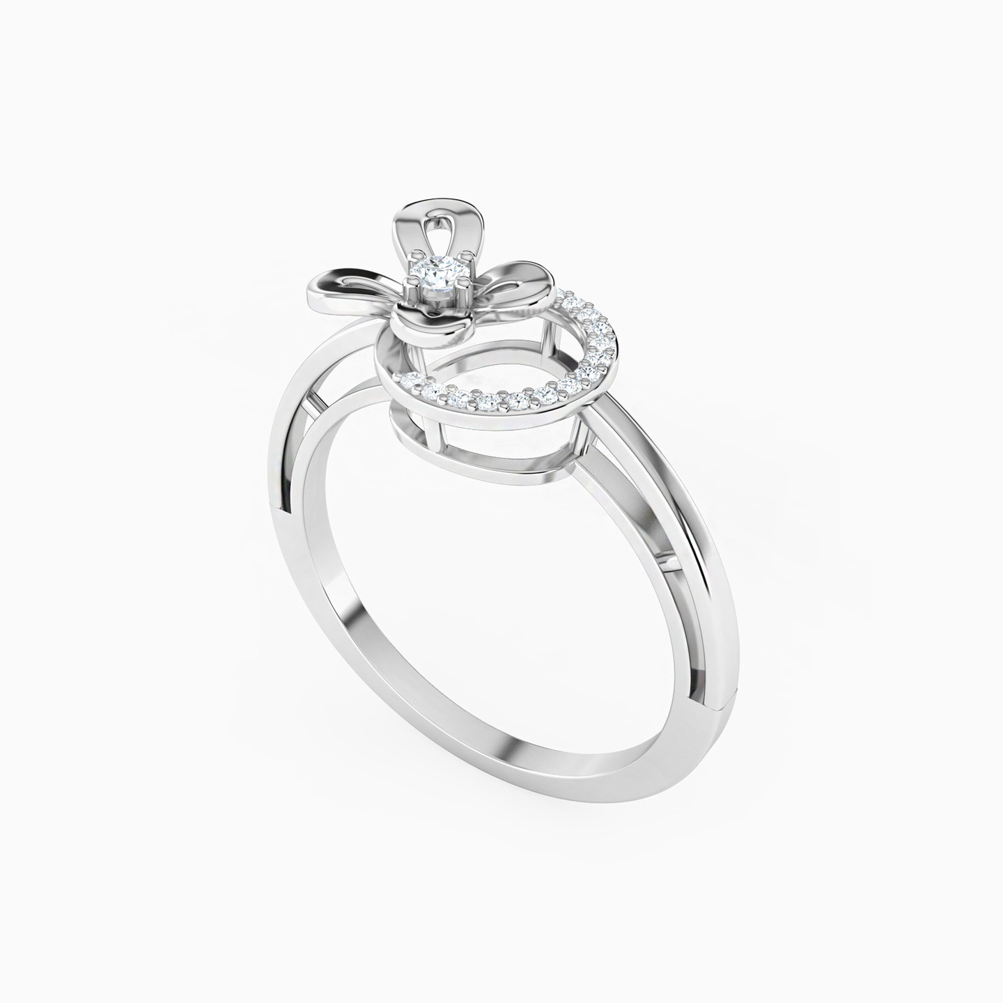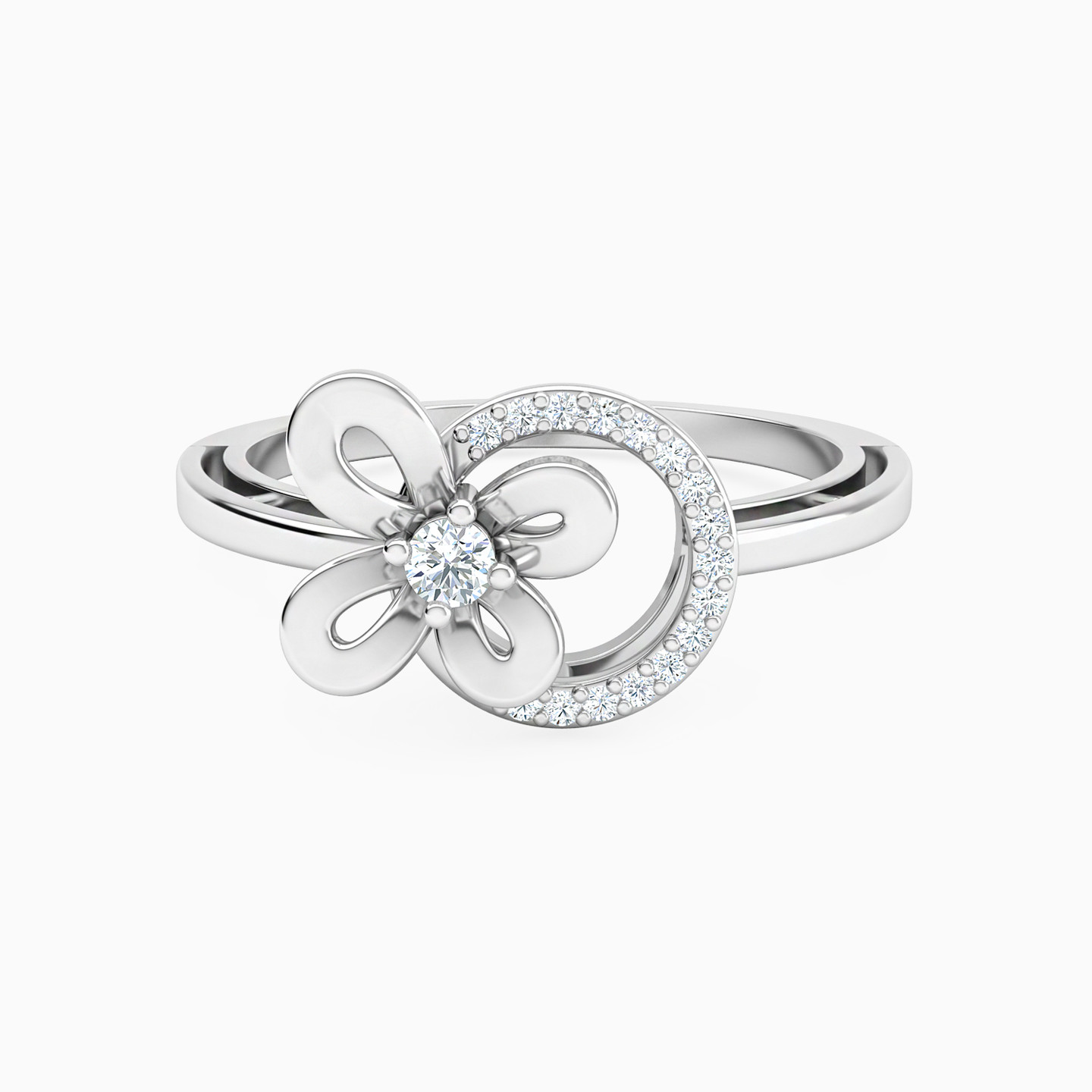 This 18-karat white gold statement ring by L'azurde Diamonds features a gorgeous centerpiece made of a lovely butterfly silhouette and a circular halo studded with 0.09-carat brilliant cut diamonds. The unique design looks like a butterfly ready to flutter and fly high into the world from a radiating halo. Every time you don this ring, it will inspire you to break away from those shackles and soar as high as you can.