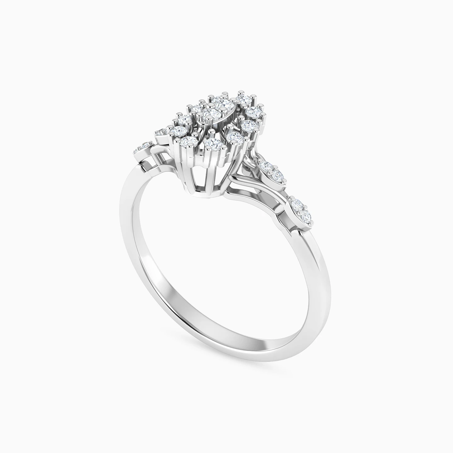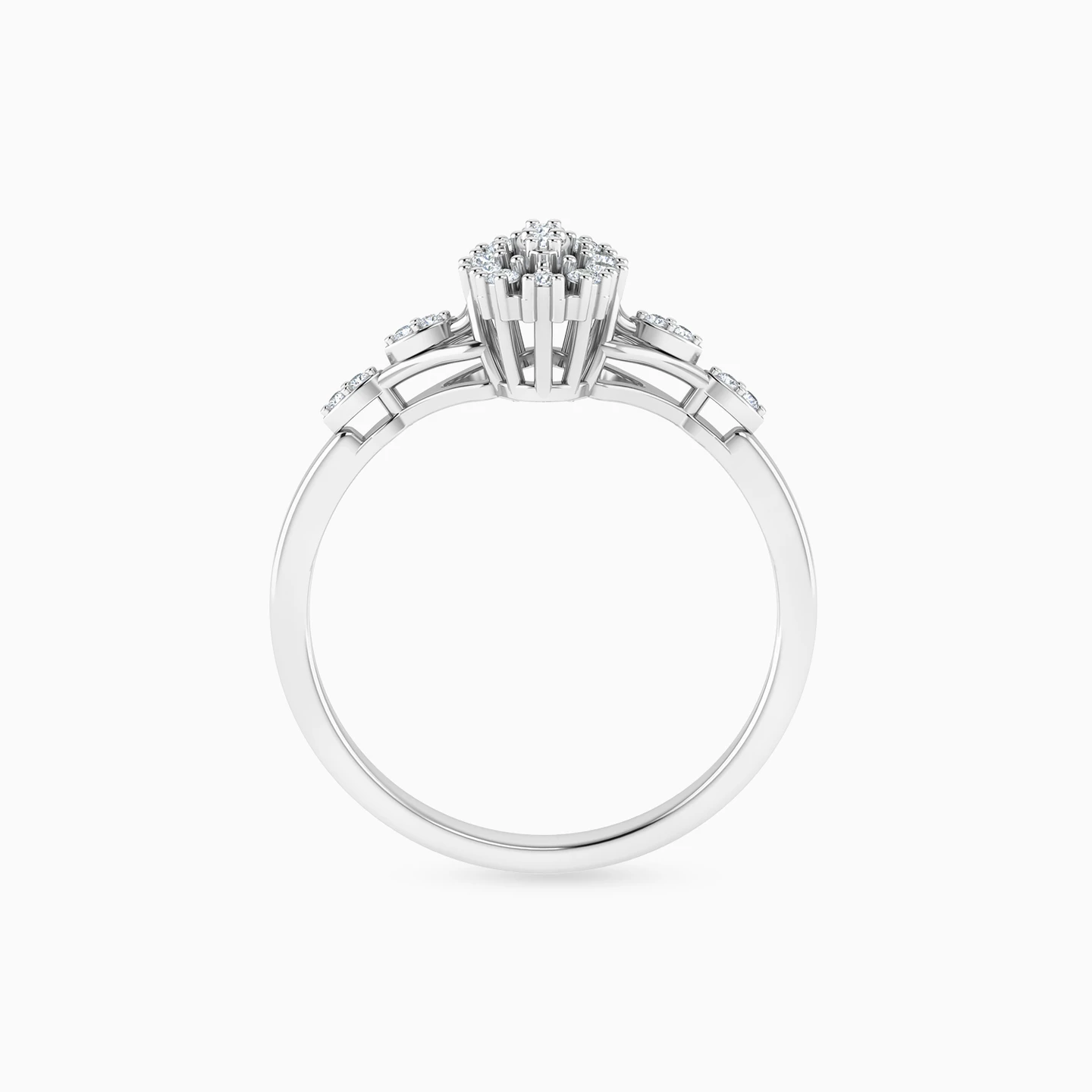 Beauty that will light up your life! This statement ring by L'azurde Diamonds features a gorgeous oval-shaped frame lined with prong-set 0.15-carat brilliant cut diamonds placed perfectly equidistant from each other. Perfectly complementing this exquisite centerpiece are the two marquise-shaped studded motifs on either side of this 18-karat white gold ring. Style this ring with a cocktail dress for a sizzling look.