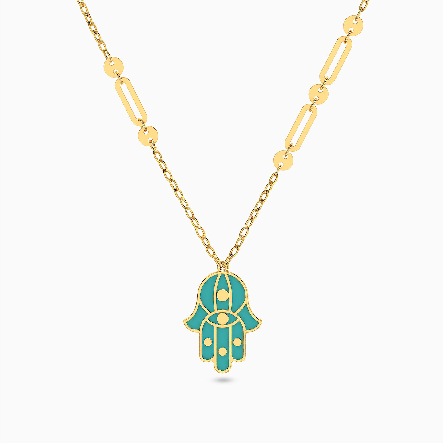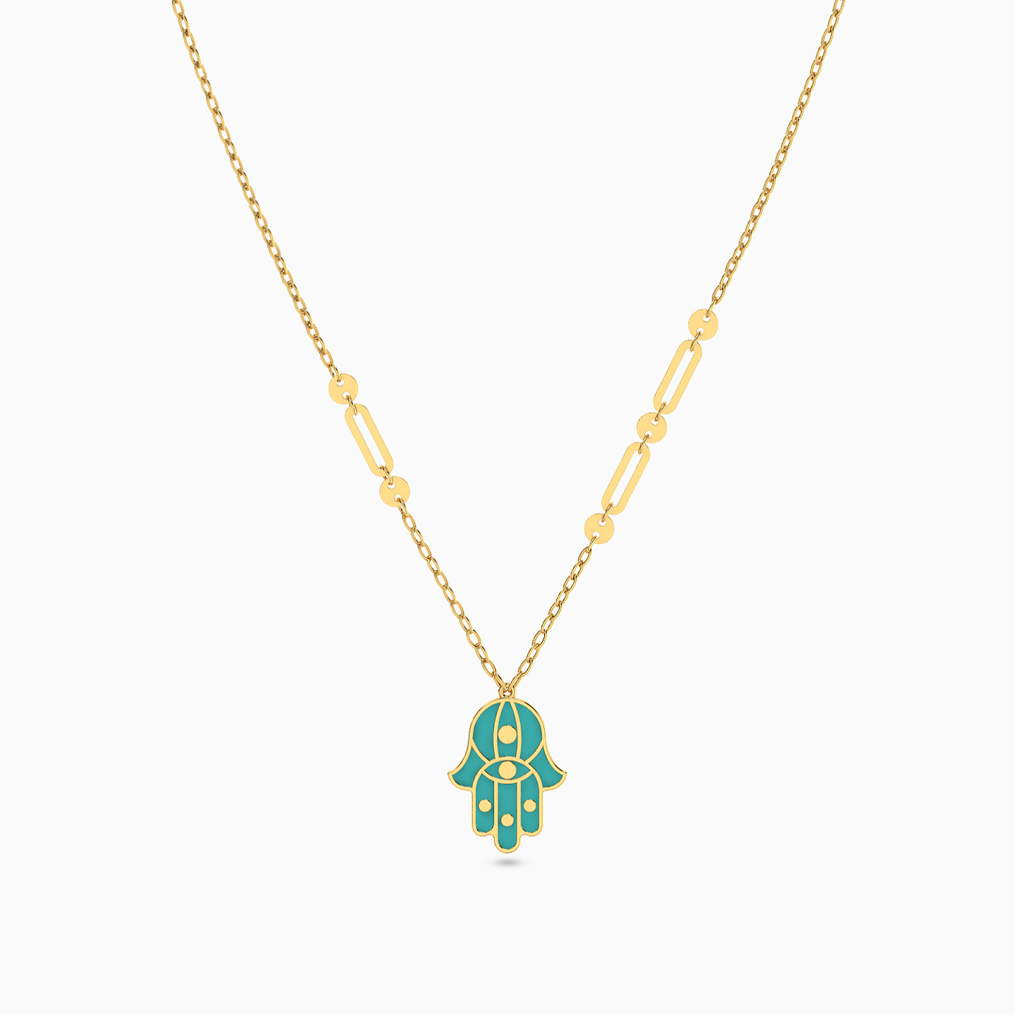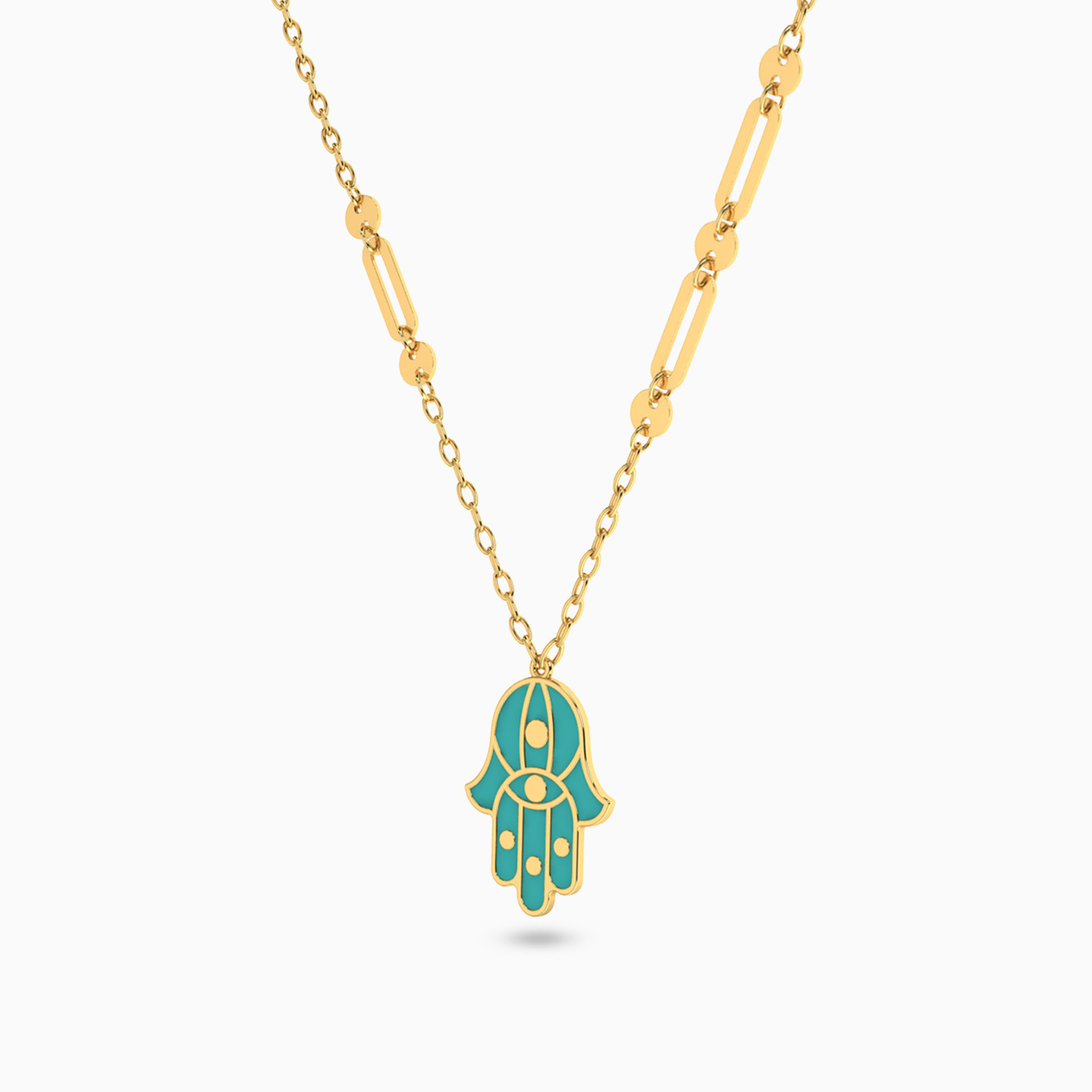 Carry your luck close to your heart with this hamsa necklace from L'azurde Instyle. The petite blue pendant that's carved into hamsa motif drops from a dainty 18-karat yellow gold chain lightly accented with links. A great option for wearing solo or layered, this number will sit right over a flowy outfit.