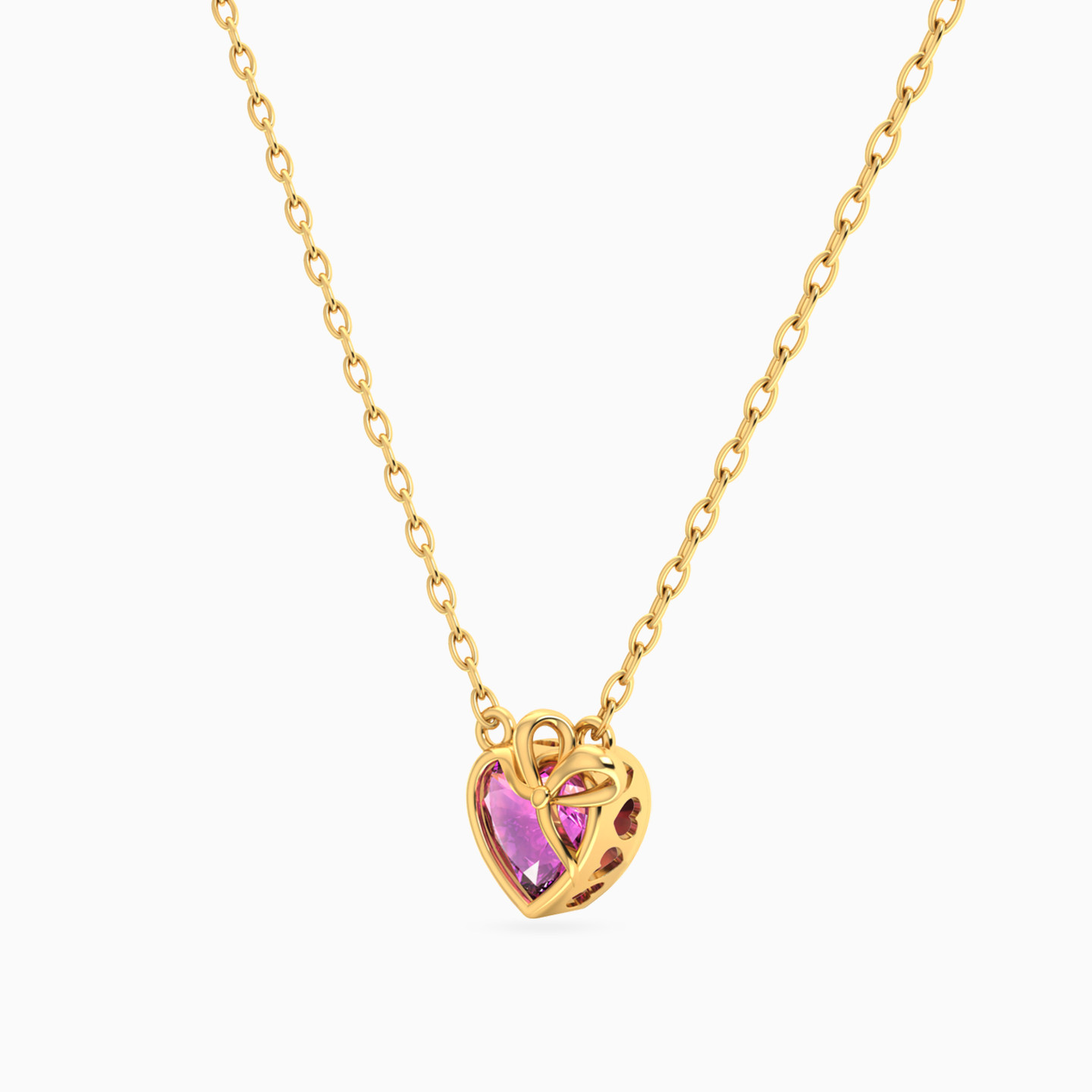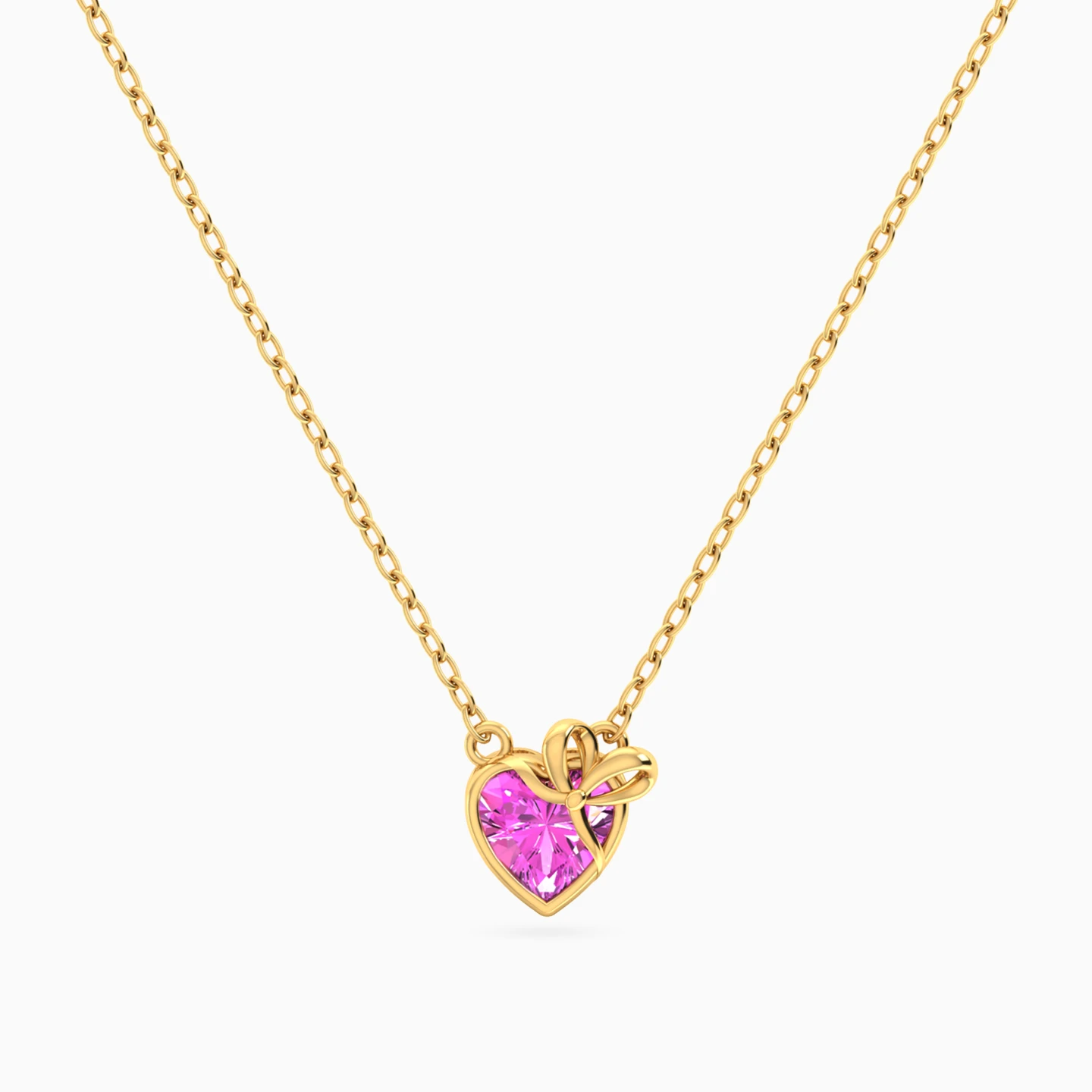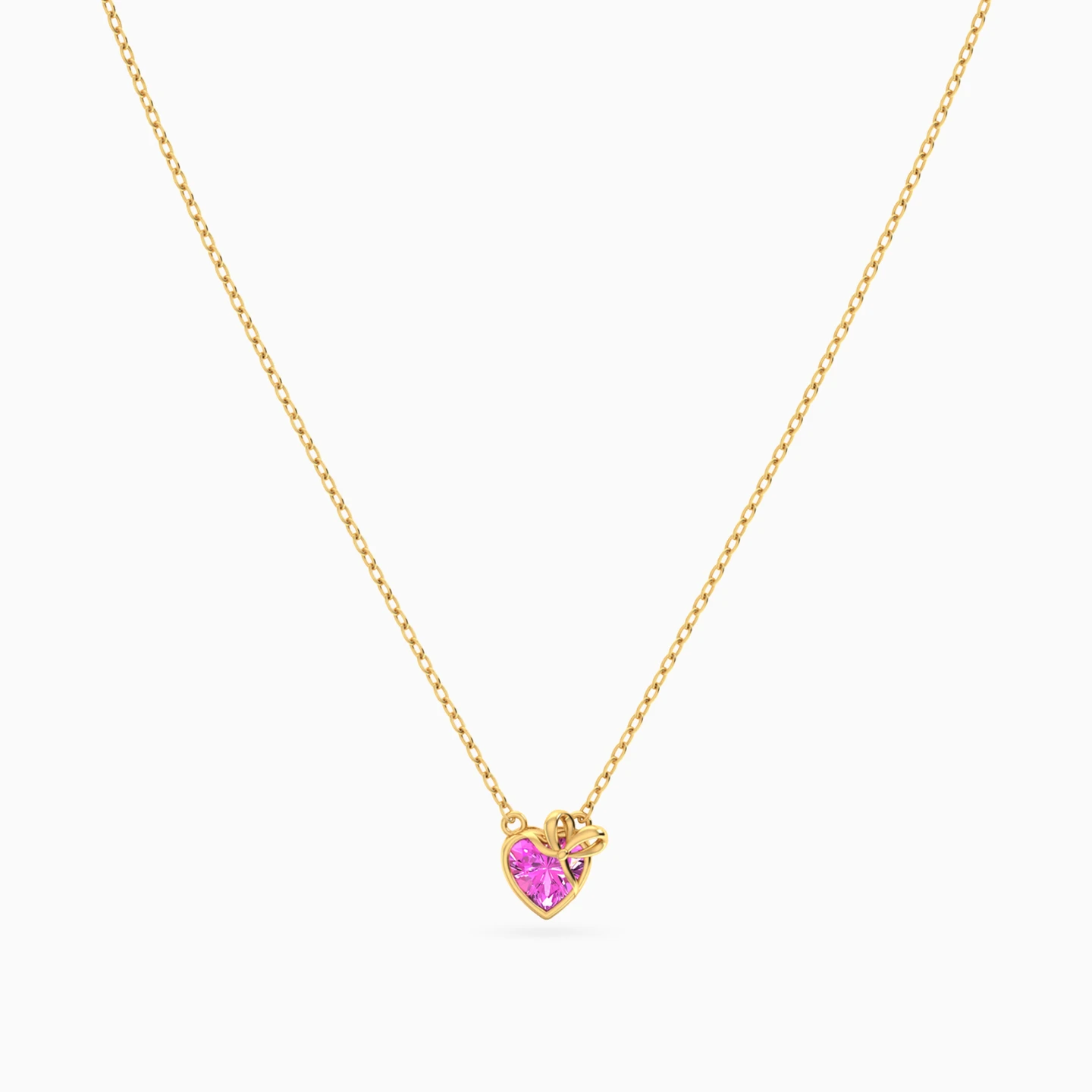 سلسة ذهب قلب وفيونكة عيار 14 قيراط مزينة بحجر وردي