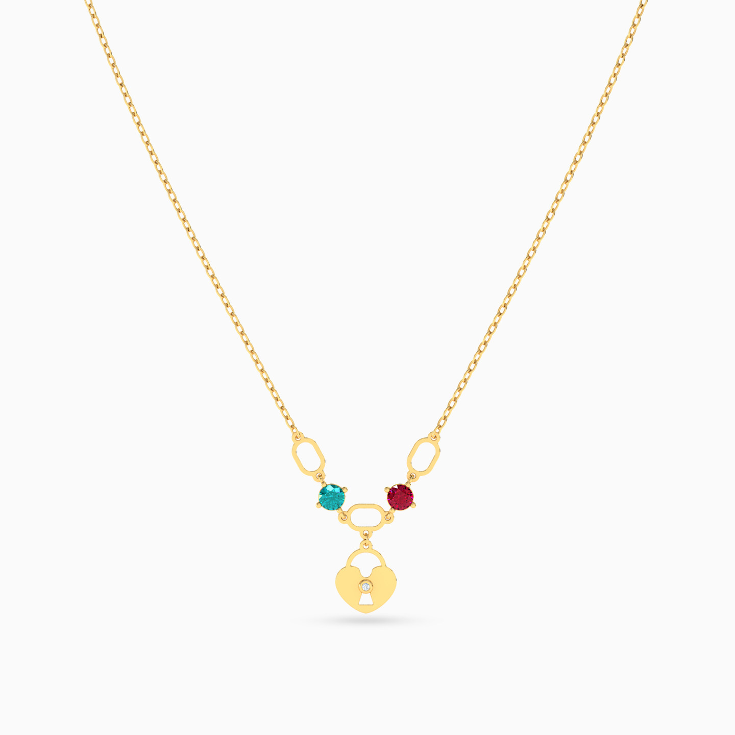 Keep your savvy style sense close to your chest with this eye-catching 18-karat yellow gold padlock necklace from L'azurde Instyle. This chic pendant features an elegant padlock design with colored stones and a clear accent sparkling from the center. We love how this enchanting piece adds a trendy vibe to work attire and weekend looks.