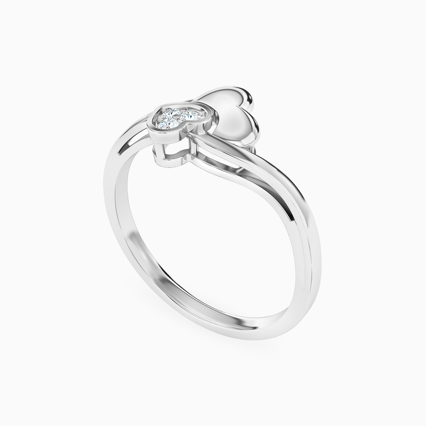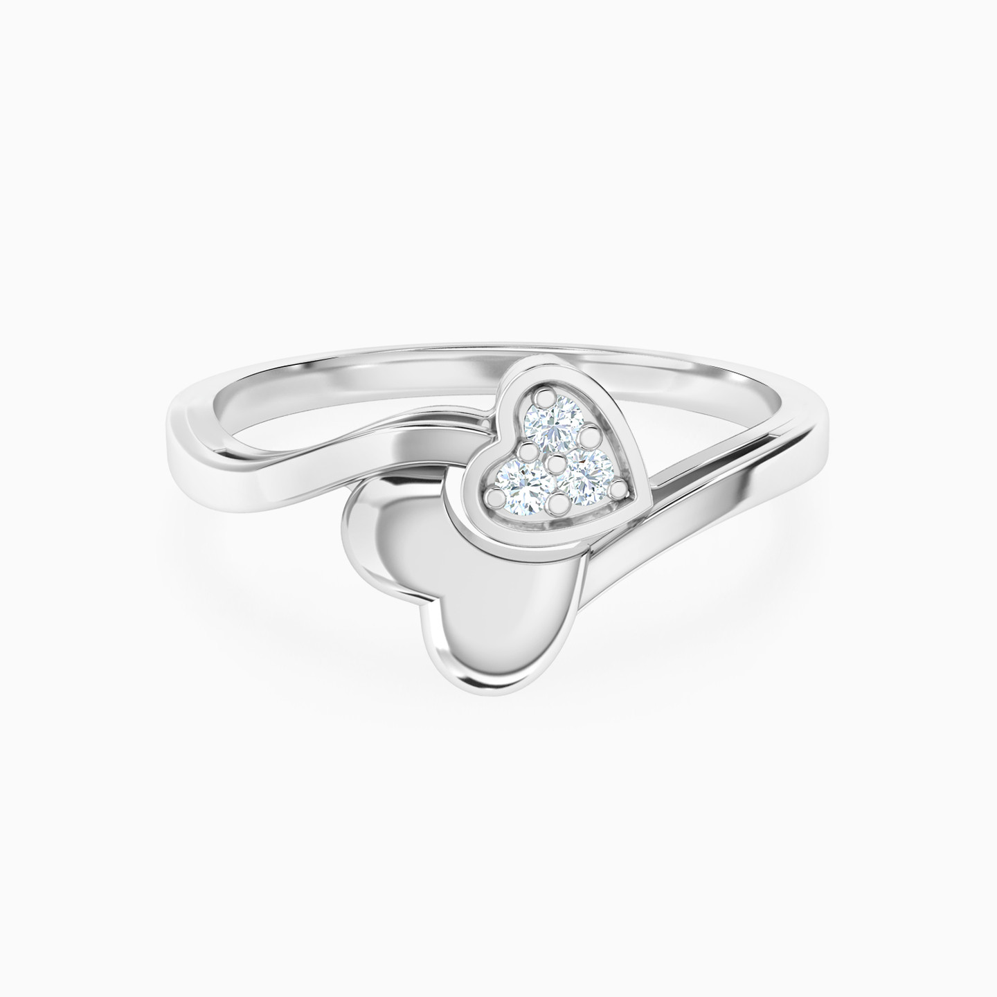 Connect your hearts with this elegant piece from L'azurde Diamonds. This 18-karat white gold ring features a plain and a diamond studded heart that sit on the sleek band with curved lines. A fitting choice for everyday wear, this would also make a great gift for a special occasion.