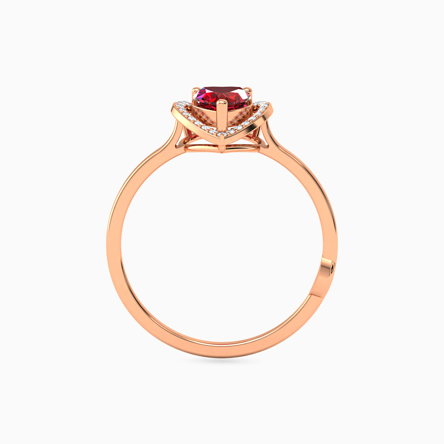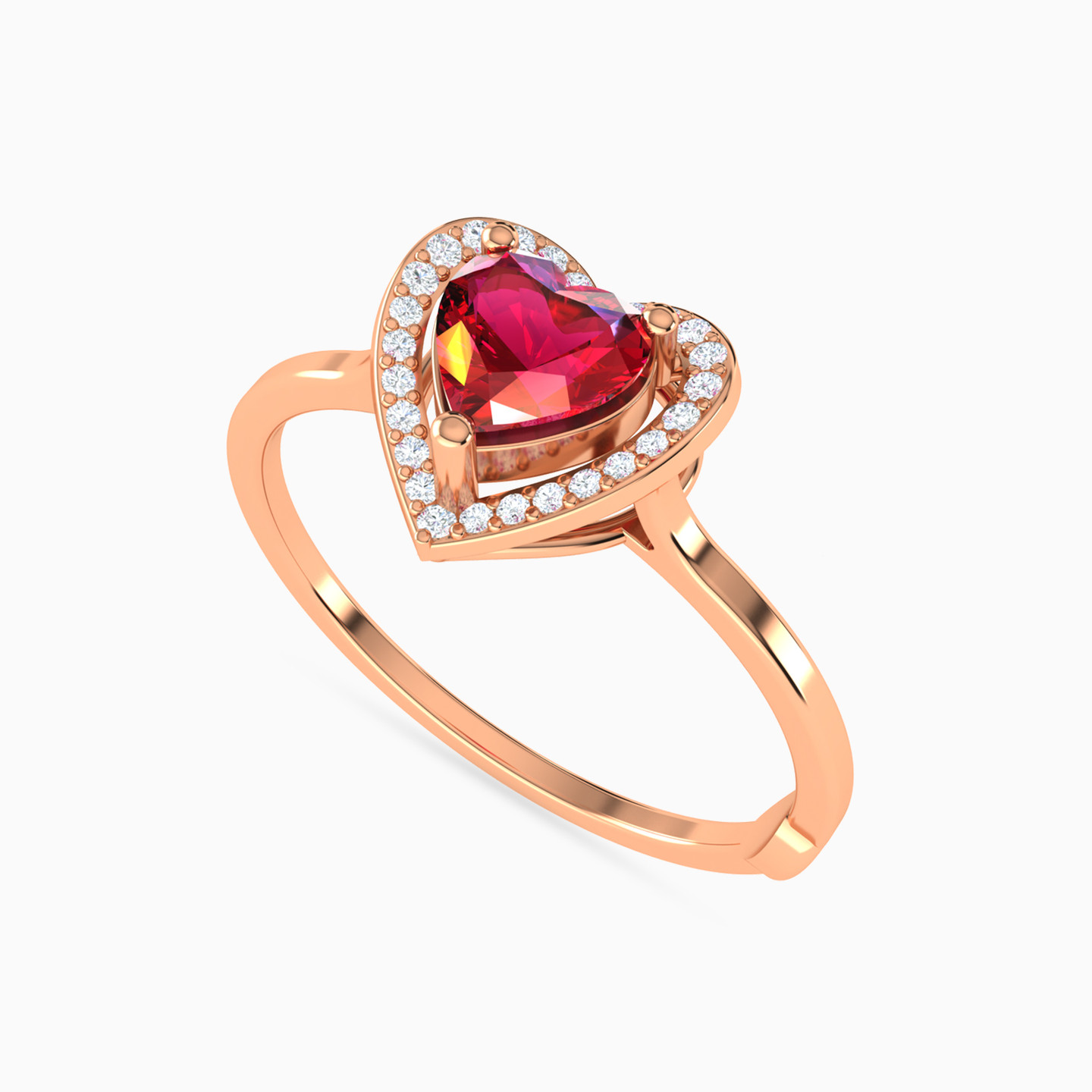 خاتم شكل قلب وهالة ذهب عيار 18 قيراط مزين بالألماس وحجر أحمر