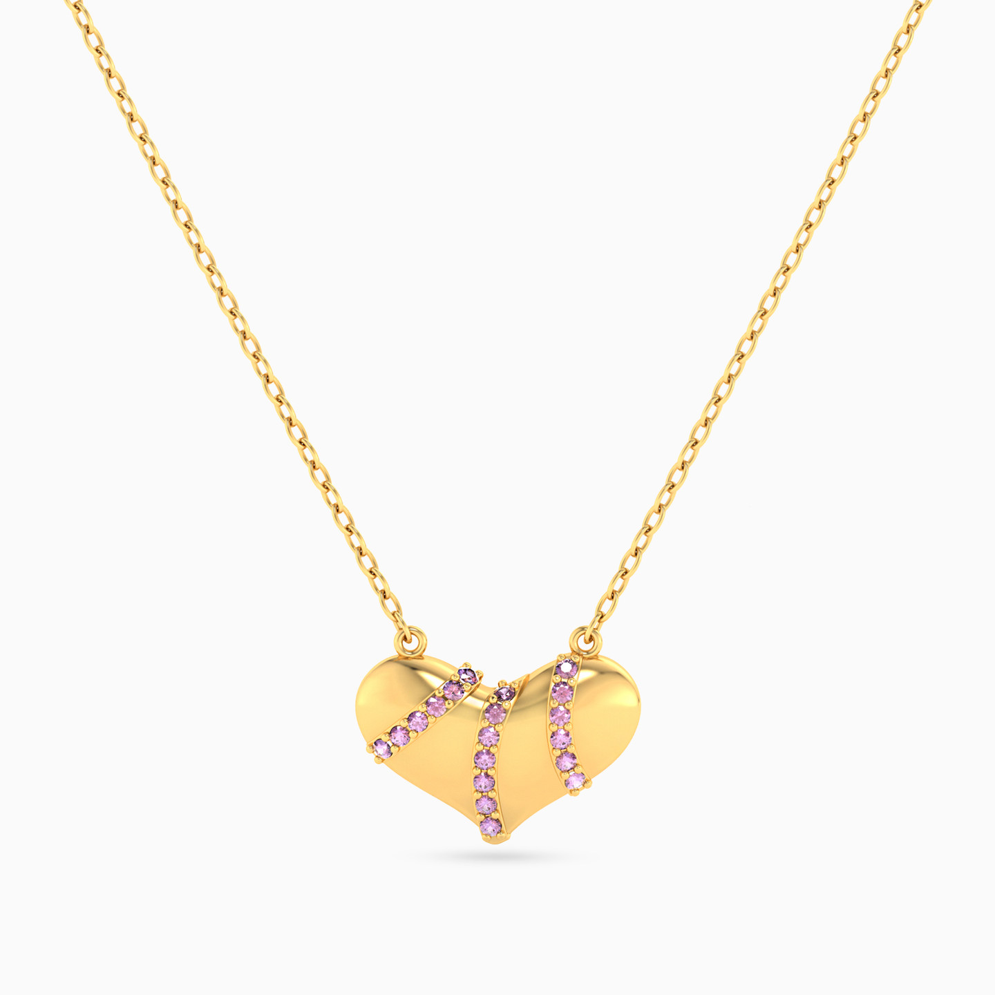 سلسة ذهب قلب عيار 14 قيراط مزينة بأحجار بنفسجي