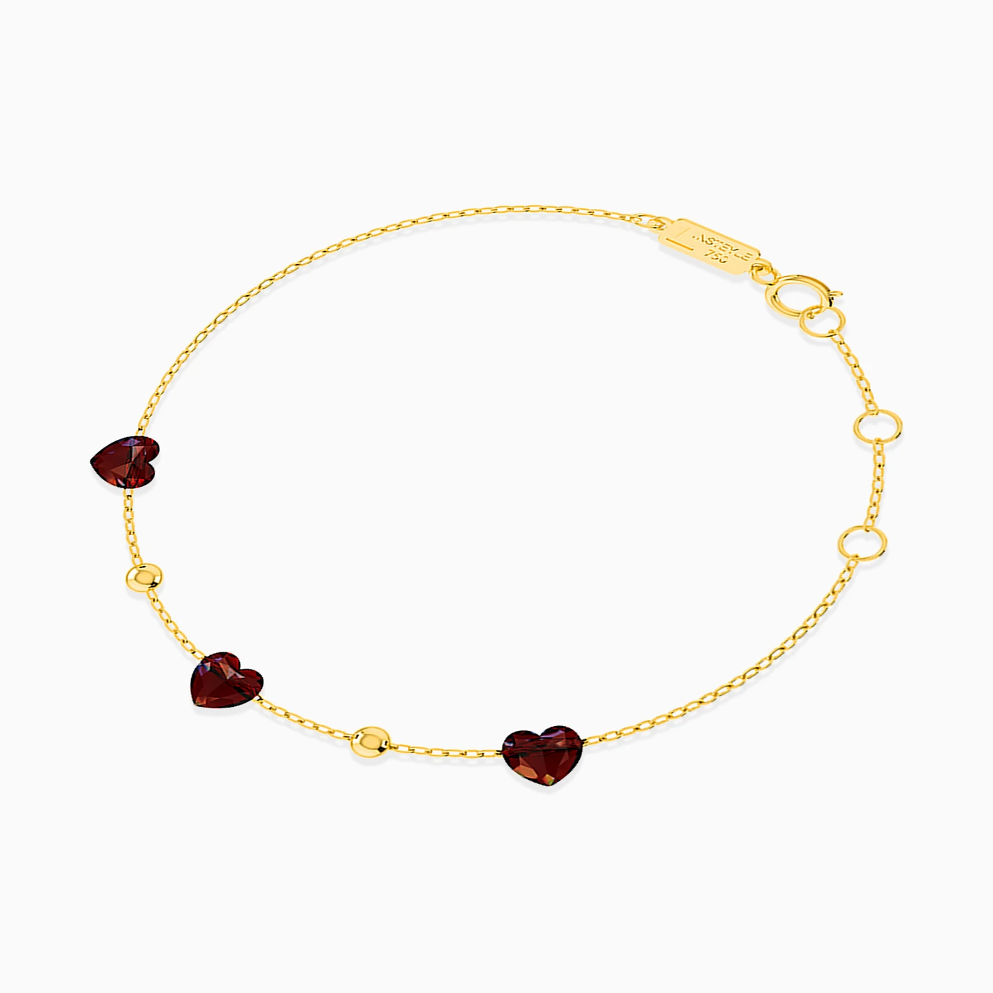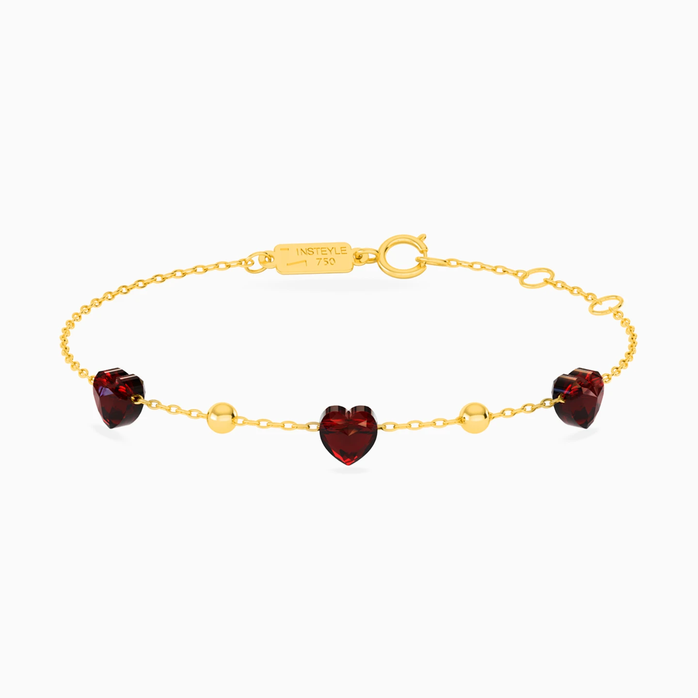 Make a bold move and see your style shine with this hearts bracelet from L’azurde Instyle. Its timeless design with a trio of deep red hearts strung together on a yellow gold chain adds so much admiration to this piece. Wear yours solo or paired with a matching ring over an evening outfit.