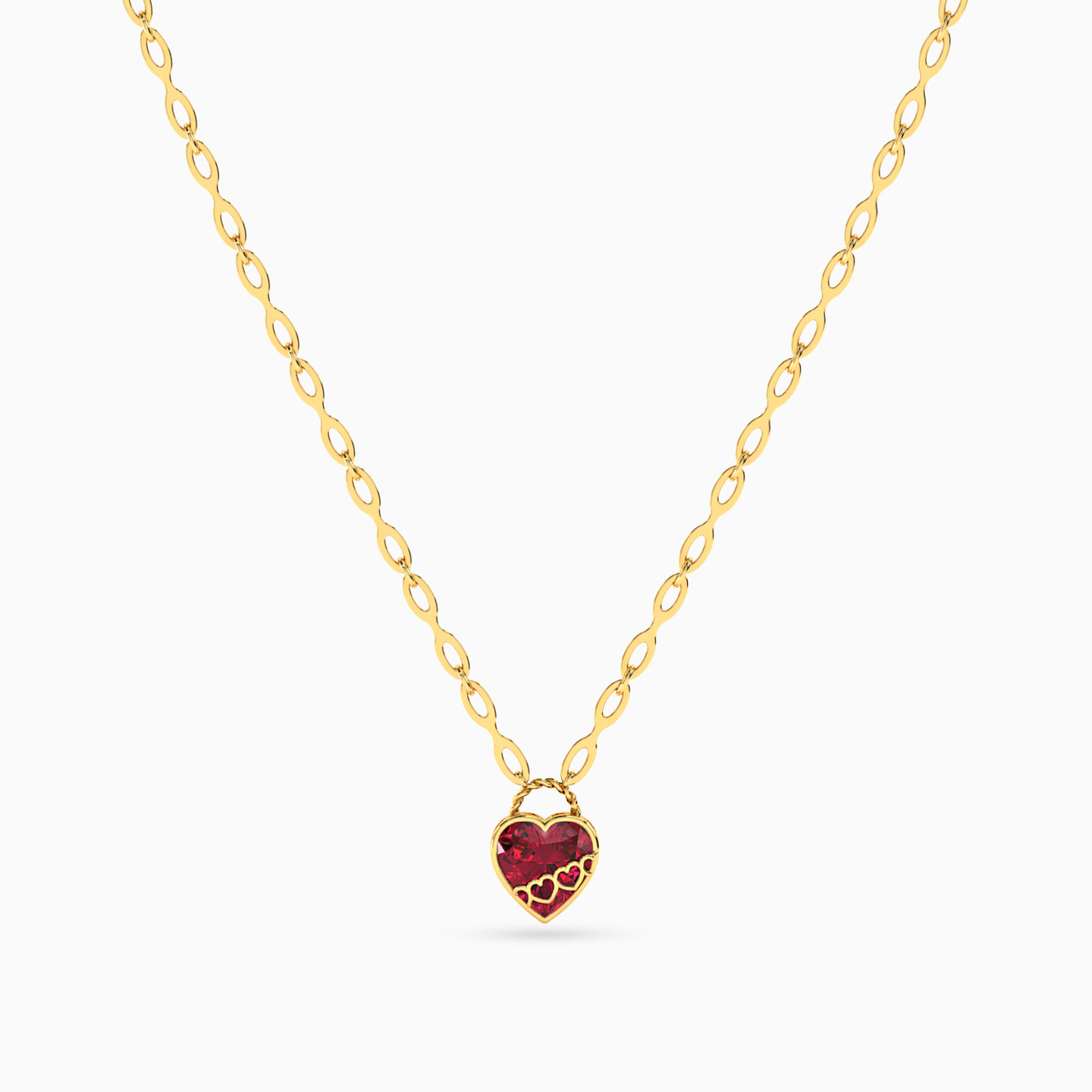 سلسلة ذهب قلب عيار 14 قيراط مزينة بحجر أحمر