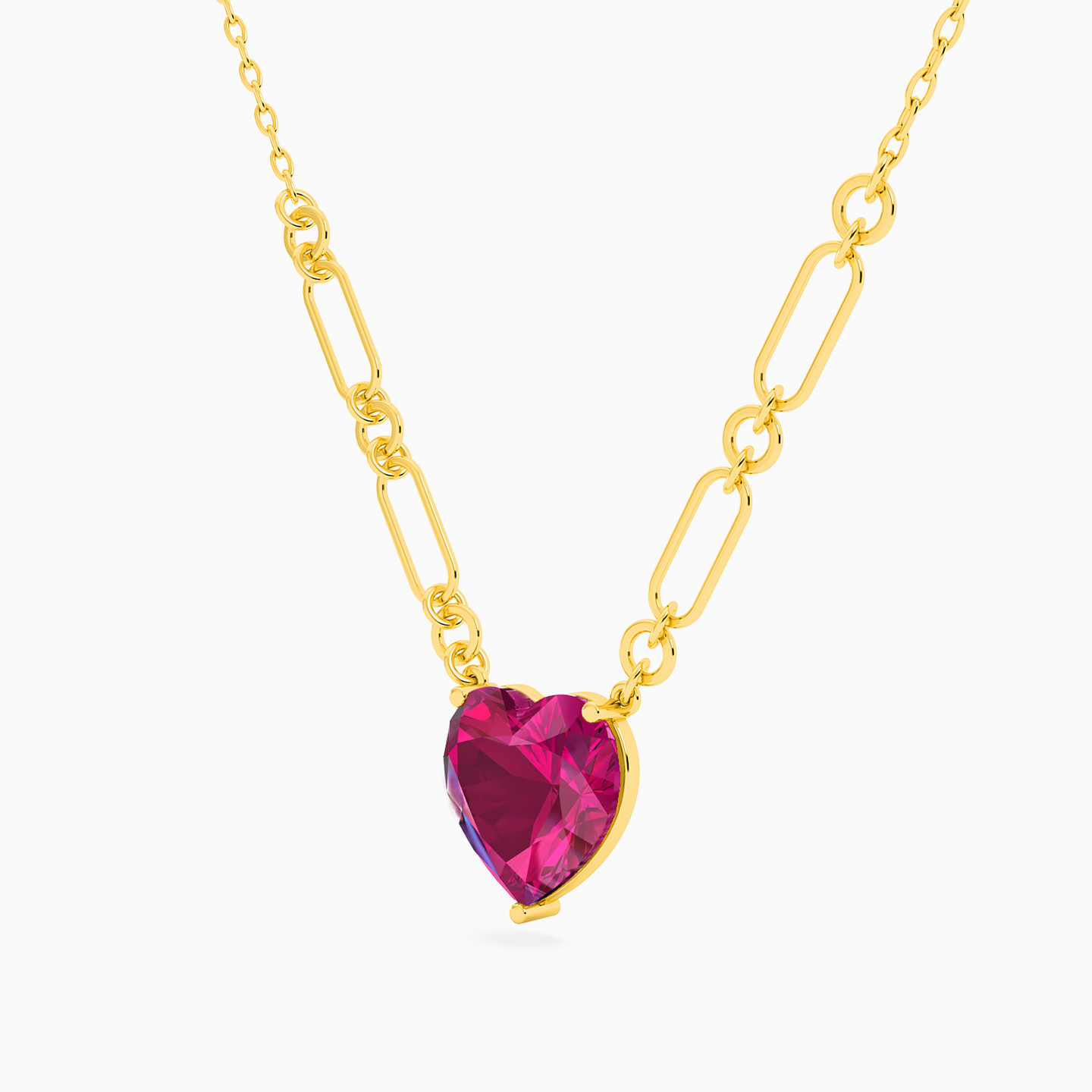 Bringing boldness to your outfit, this sharp necklace from L’azurde Instyle is sure to make a statement everywhere you go. The pink stone heart is suspended from a yellow gold chain that's accented with chain link accents to give it a solid look. Wear this with a matching bracelet from our collection for maximum effect.