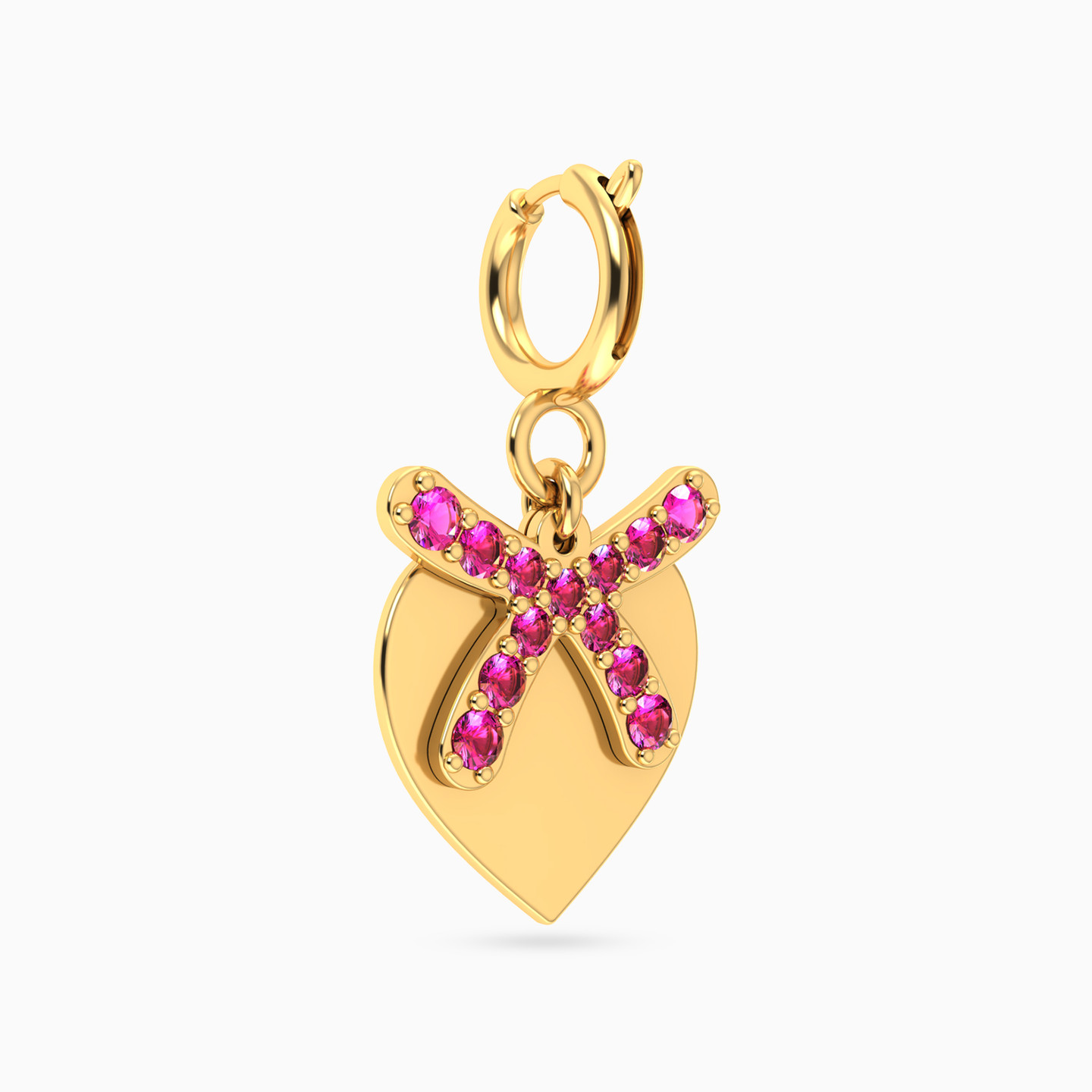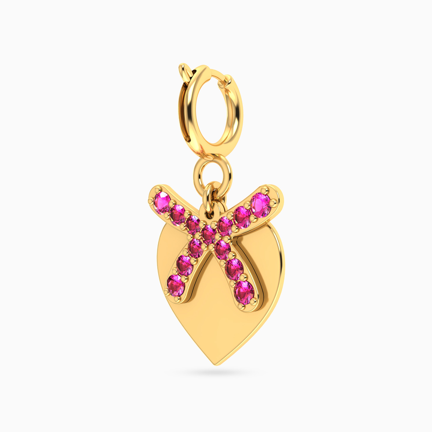دلاية ذهب عيار 14 قيراط شكل قلب مزينة بحجر وردي