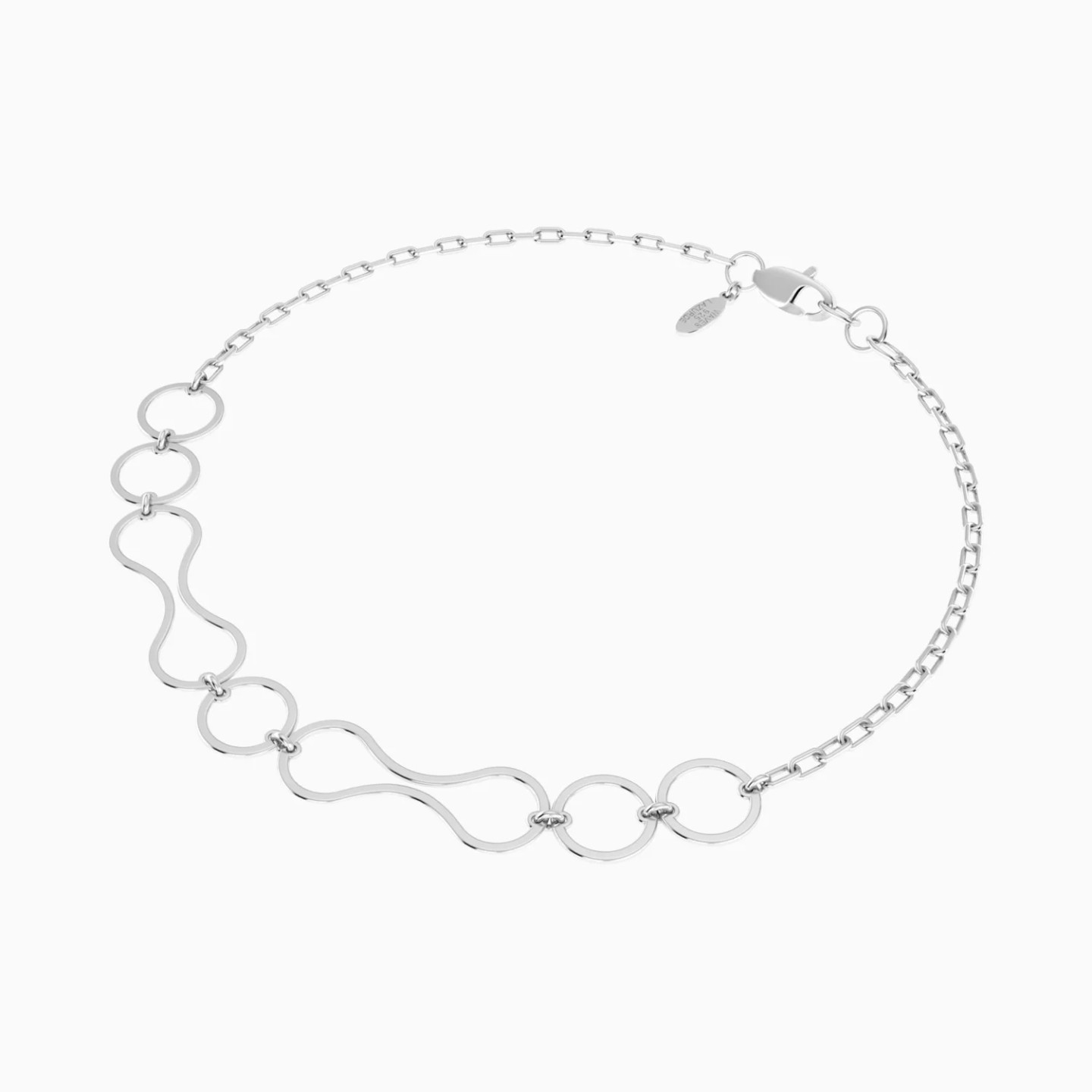 Endless lines moving in gentle rhythm. This Waves silver chain bracelet from the Equinox Collection features alternating infinity-shaped open frames with open circular frames, creating a flowing pattern that rests lightly along the wrist. Modern and expressive, it reflects individuality and effortless confidence—an elegant everyday piece and a thoughtful gift for someone who appreciates fluid, contemporary design.