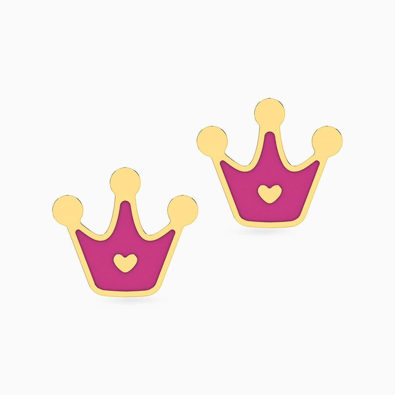 أقراط صغيرة ذهب تاج عيار 14 قيراط مزينة بالأحجار الملونة للأطفال