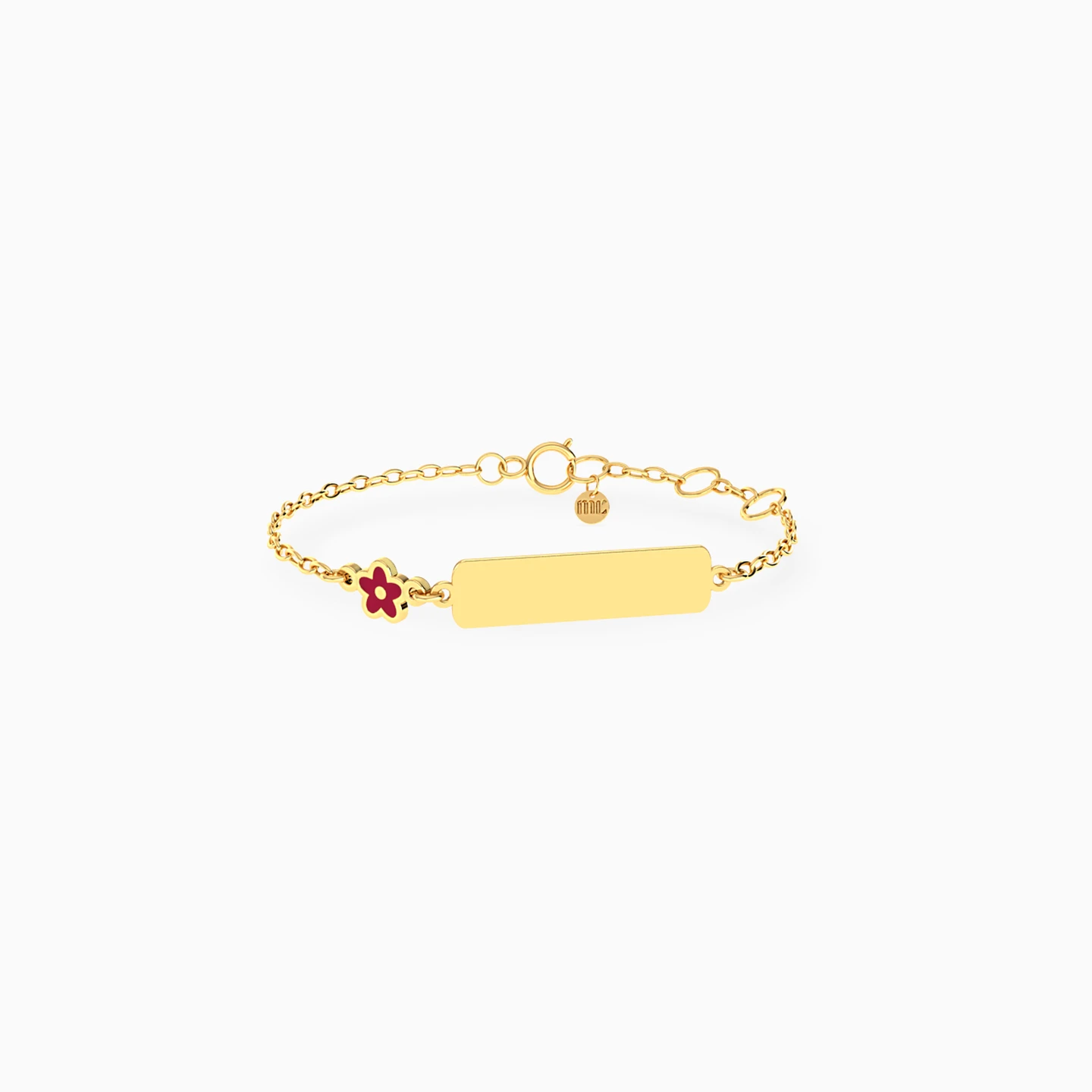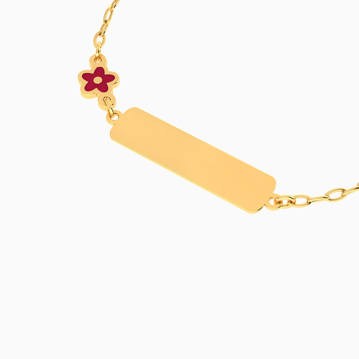 Make it truly theirs with this elegant bracelet from the Miss L Kids collection, perfect for newborns. Designed in 14k yellow gold, it features a nameplate paired with a flower charm adorned with enamel coating, creating a delightful accessory for your little one.
