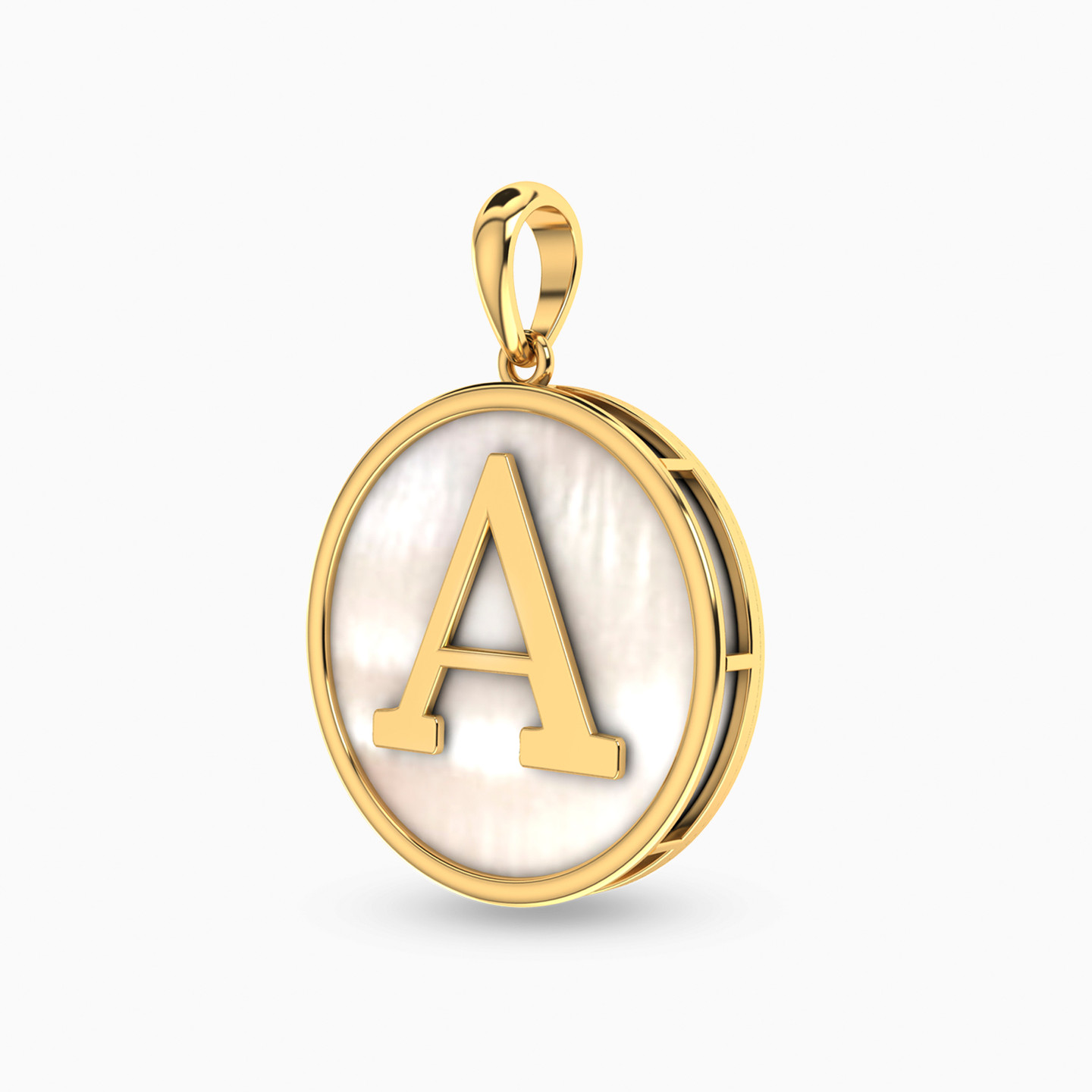 Spell out classy chic with this A letter pendant from L'azurde Instyle. Designed to uplift any day to evening outfit with utter ease, this piece is crafted in yellow gold and features a pearl base. Slip it into a yellow gold chain or wear it as a charm for maximum effect.