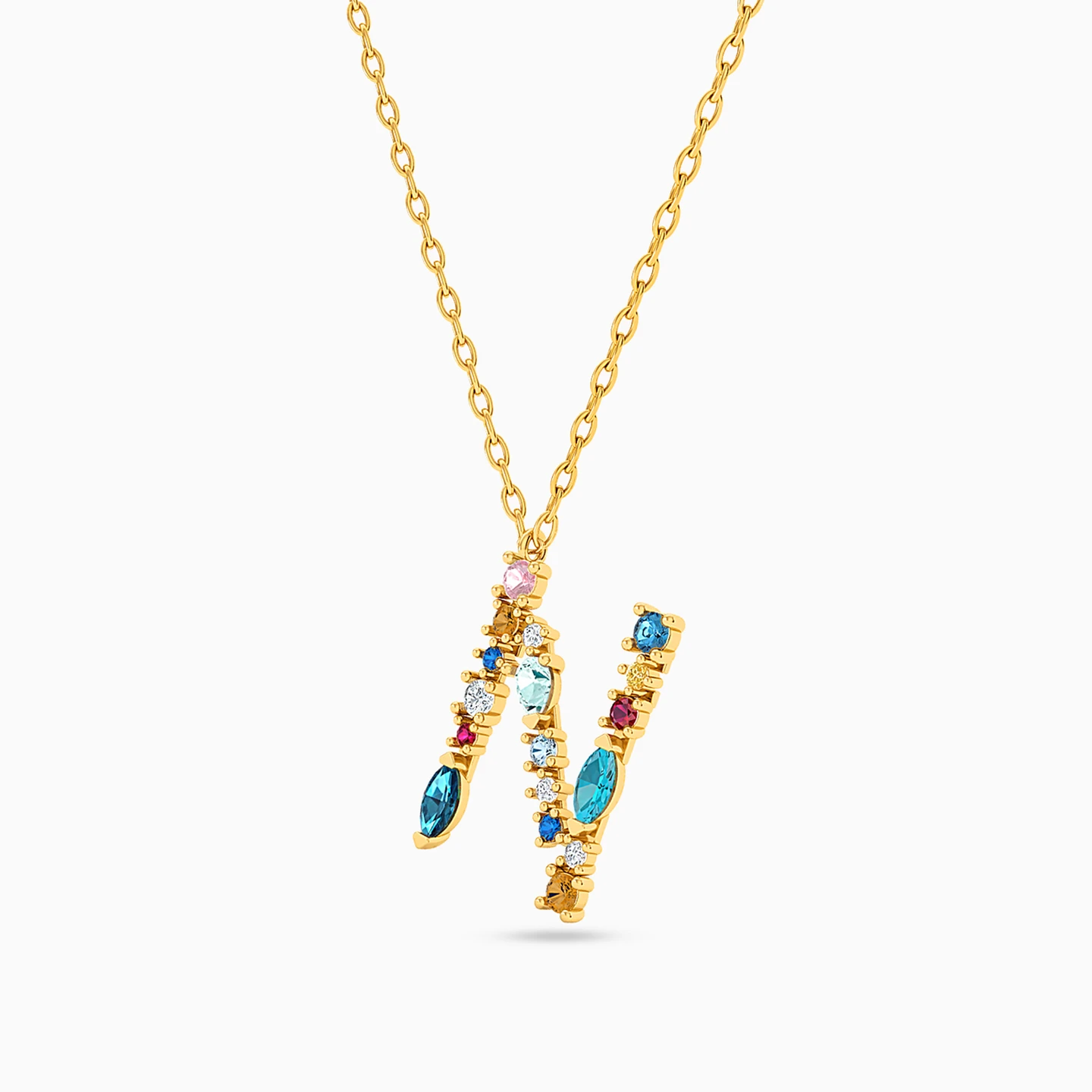 Dazzle your way throughout the day with this N letter necklace from L’azurde Instyle. The perfect expression of your personality, this necklace is studded with colorful stones in different shapes that takes its style appeal up a notch. Suspended from an 14-karat yellow gold chain, it will work beautifully as a standalone piece.