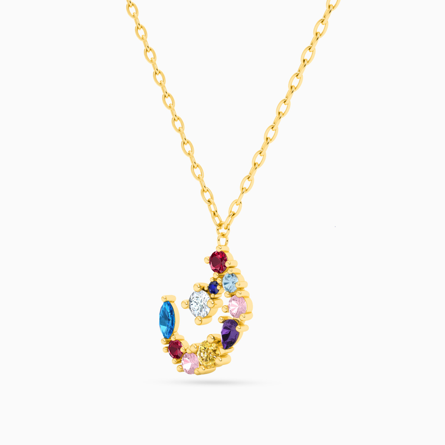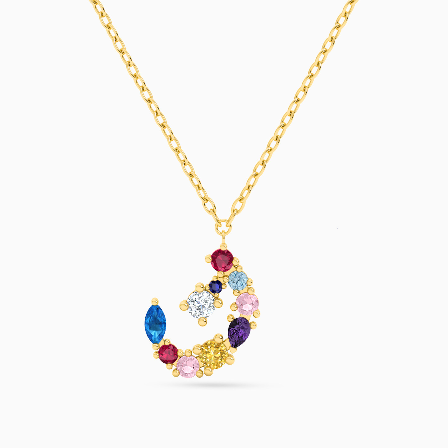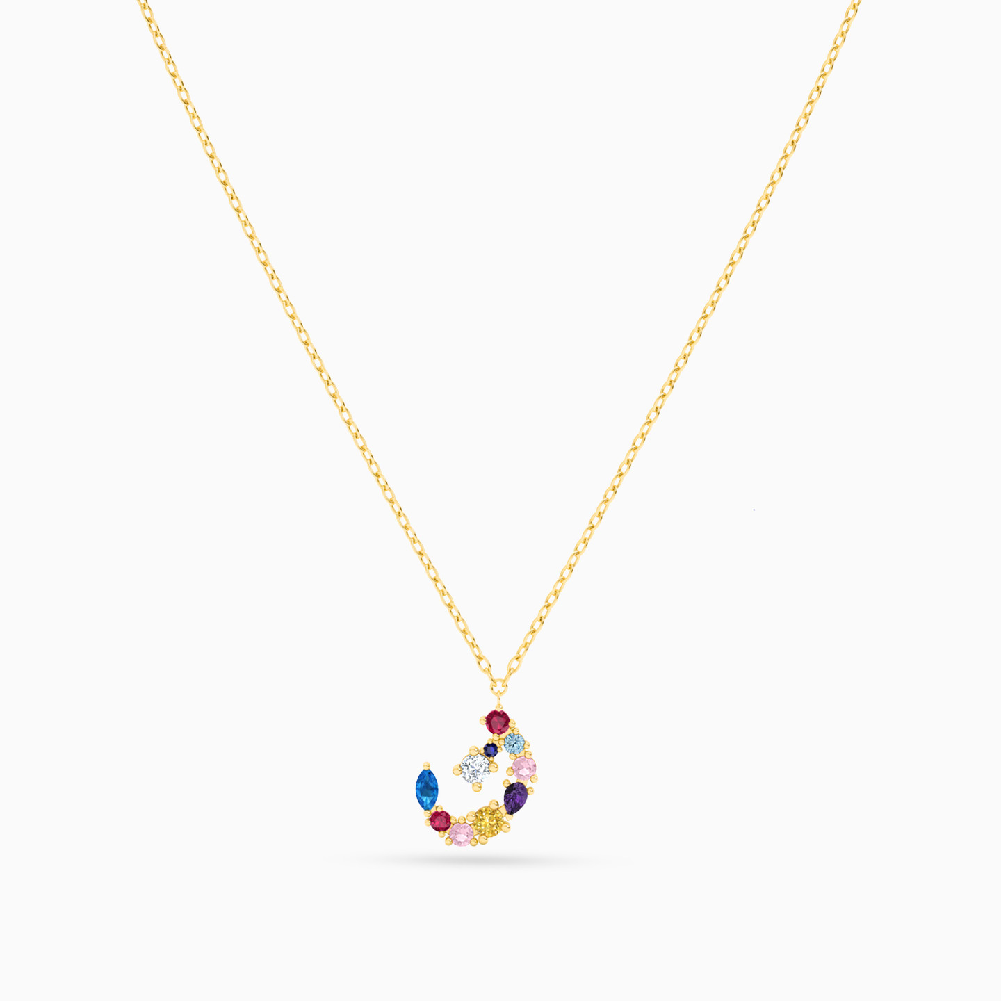 سلسلة ذهب حرف ن عيار 18 قيراط مزينة بالأحجار الملونة