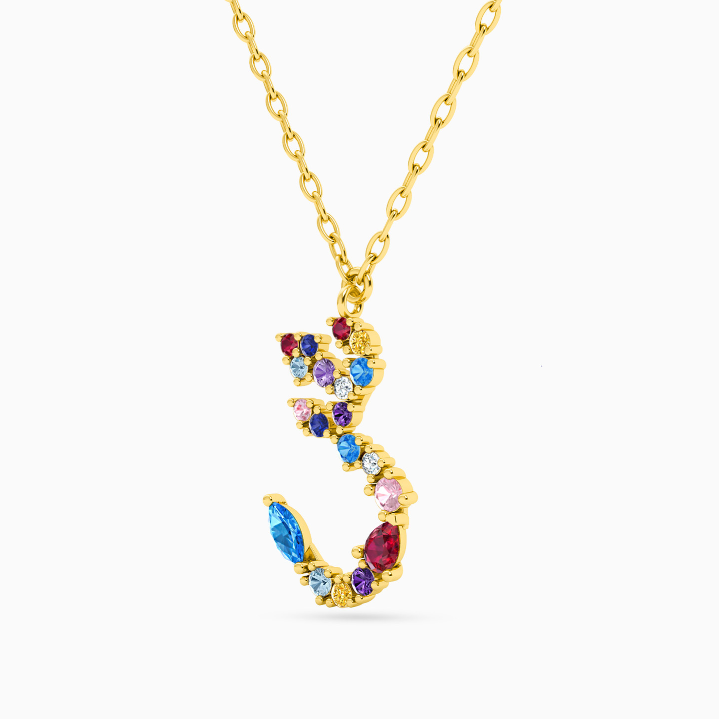 سلسلة ذهب حرف ش عيار 18 قيراط مزينة بالأحجار الملونة