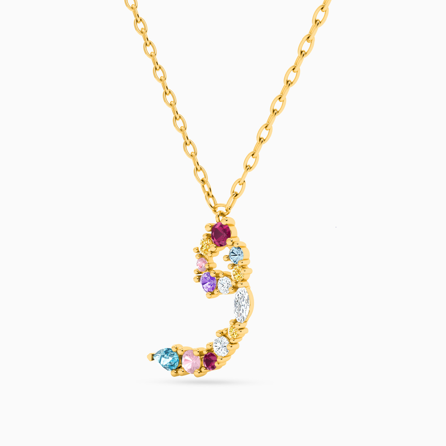 This Waw letter necklace from L’azurde Instyle is sure to add a wow appeal to your look. We love the colored stones that illuminate the façade of this pendant and the dainty yellow gold chain that drops it fittingly to accentuate any low neckline.