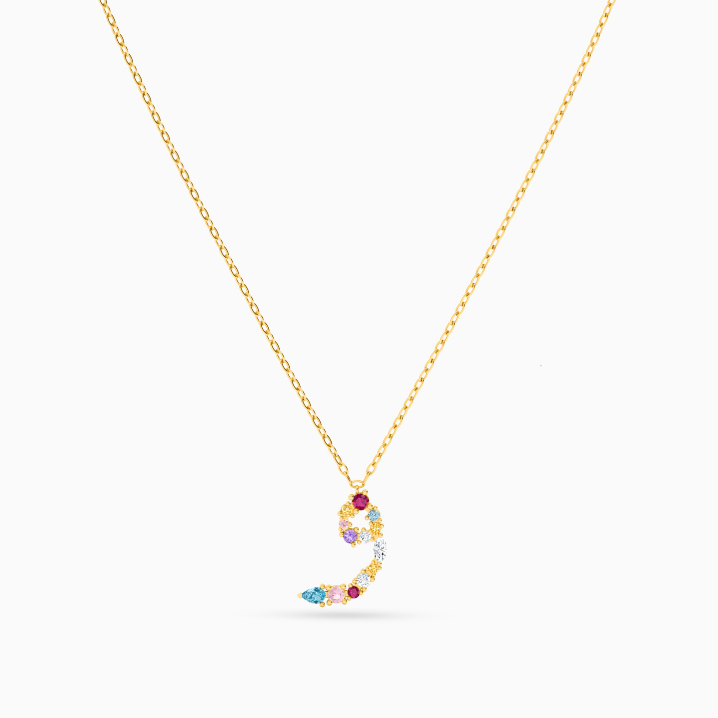 سلسلة ذهب حرف و عيار 18 قيراط مزينة بالأحجار الملونة