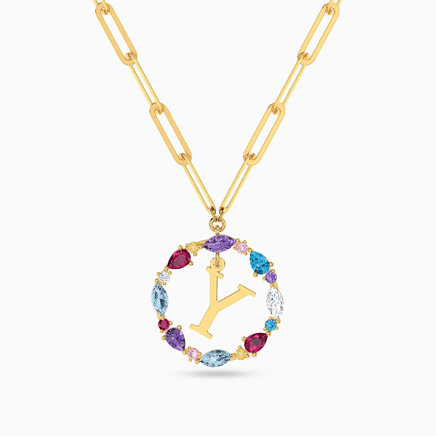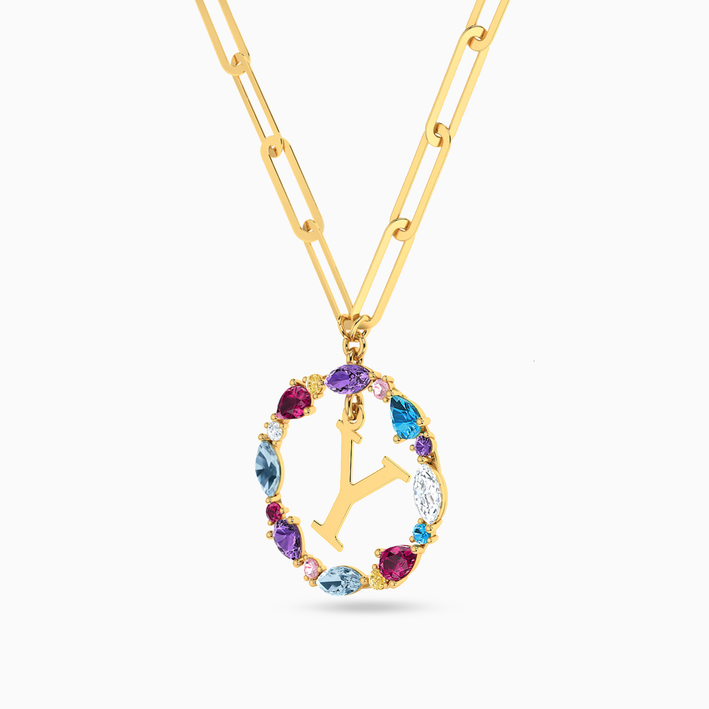 سلسلة ذهب حرف Y عيار 18 قيراط مزينة بالأحجار الملونة