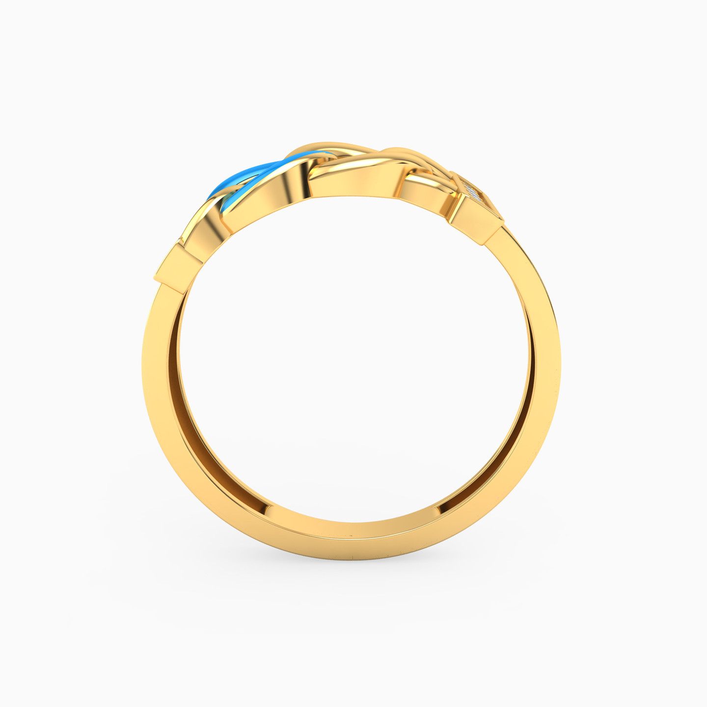 خاتم ذهب حلقات عيار 18 قيراط مزين بأحجار الزركون ومطلي بالمينا