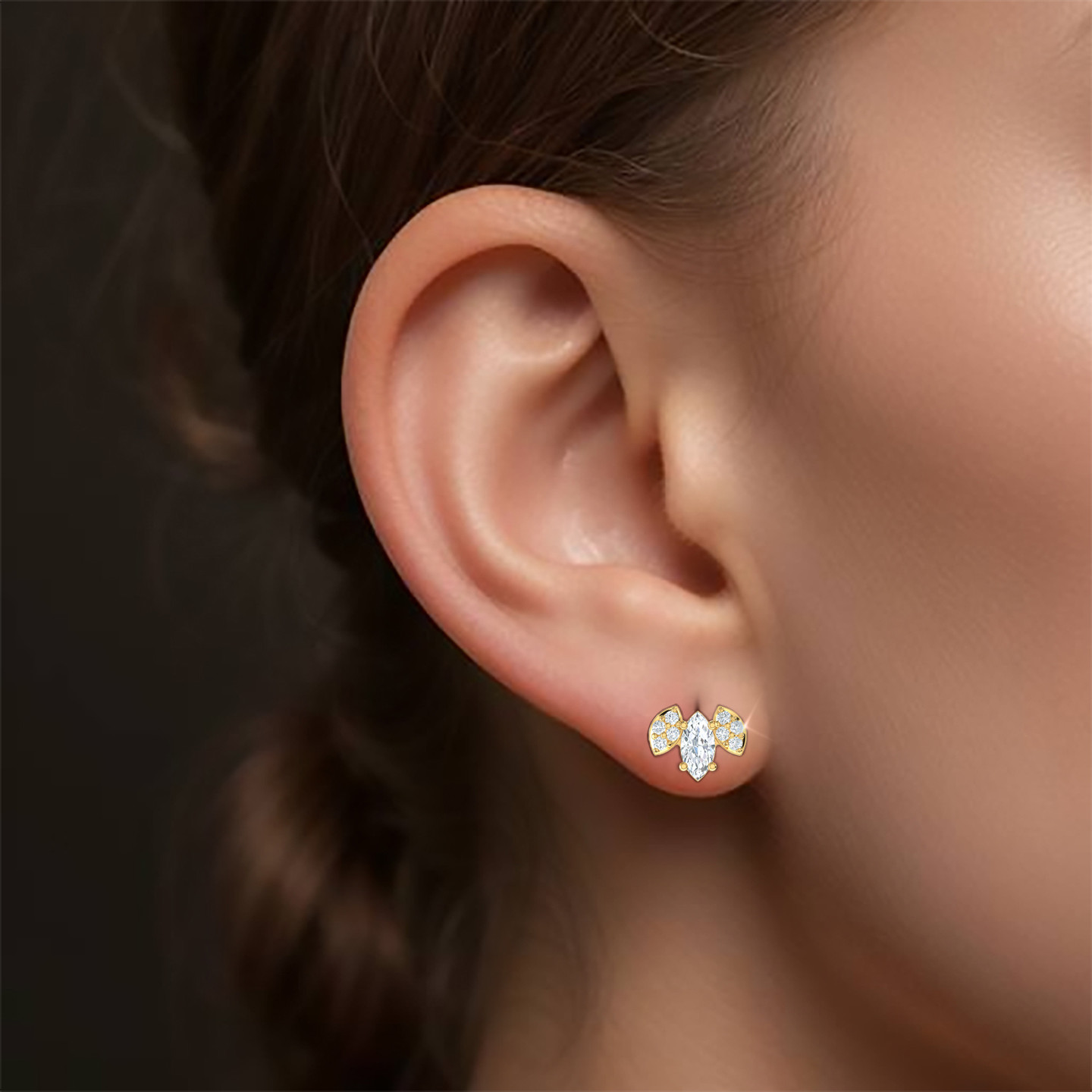 أقراط صغيرة ذهب ماركيز عيار 18 قيراط مزينة بأحجار الزركون