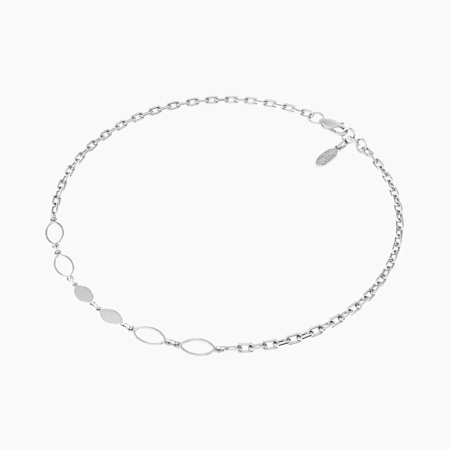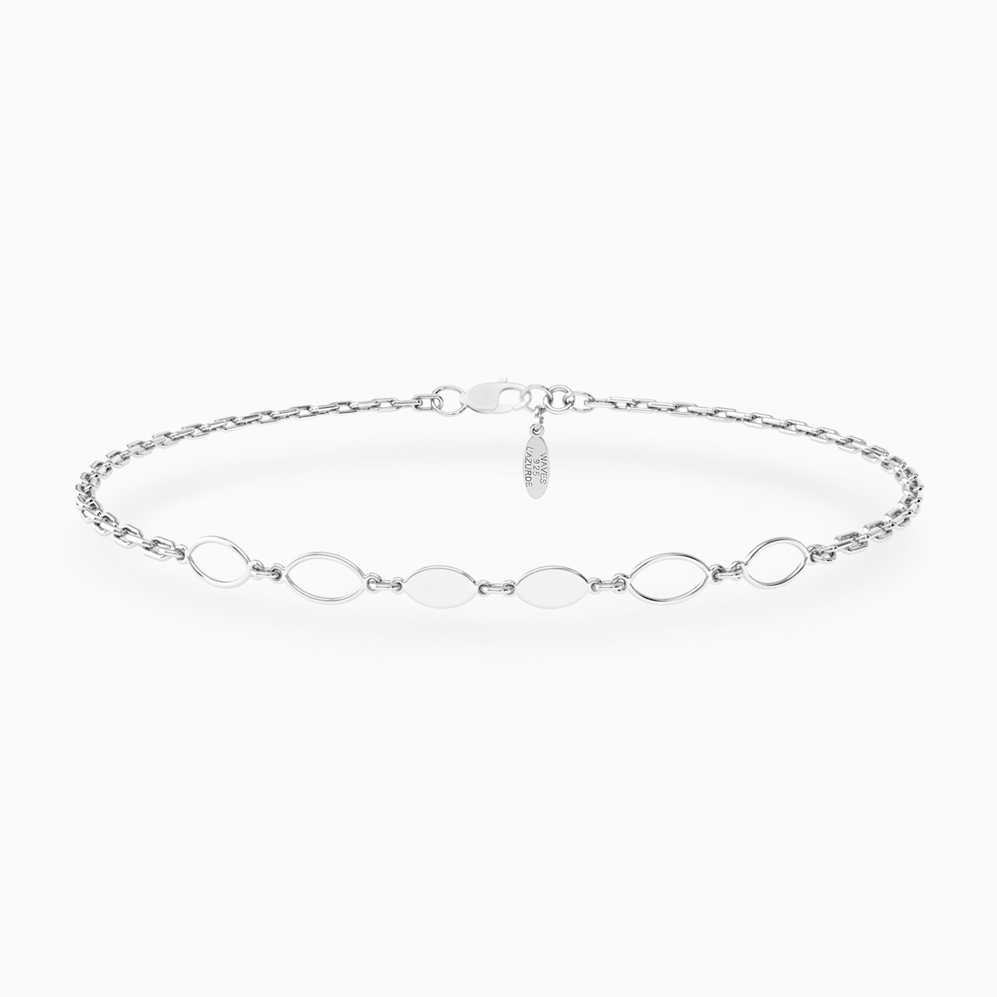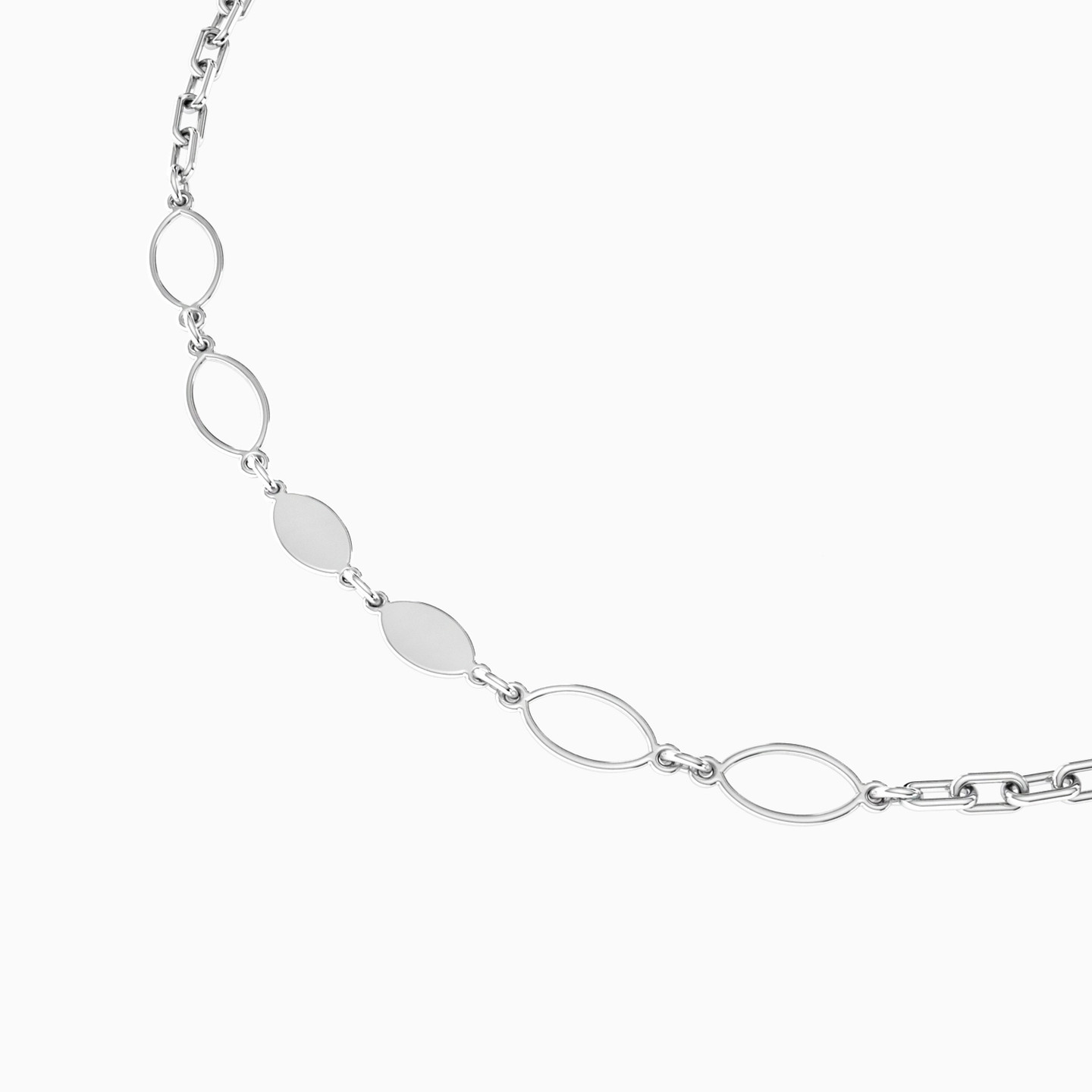 A refined rhythm unfolds in this Waves chain bracelet, composed of alternating marquise-shaped links that flow with effortless continuity. The open and solid forms create a subtle play of light and balance, reflecting a calm confidence and modern sensibility. Designed to sit gracefully on the wrist, it feels personal yet understated. A thoughtful gift that speaks of harmony, connection, and timeless elegance.