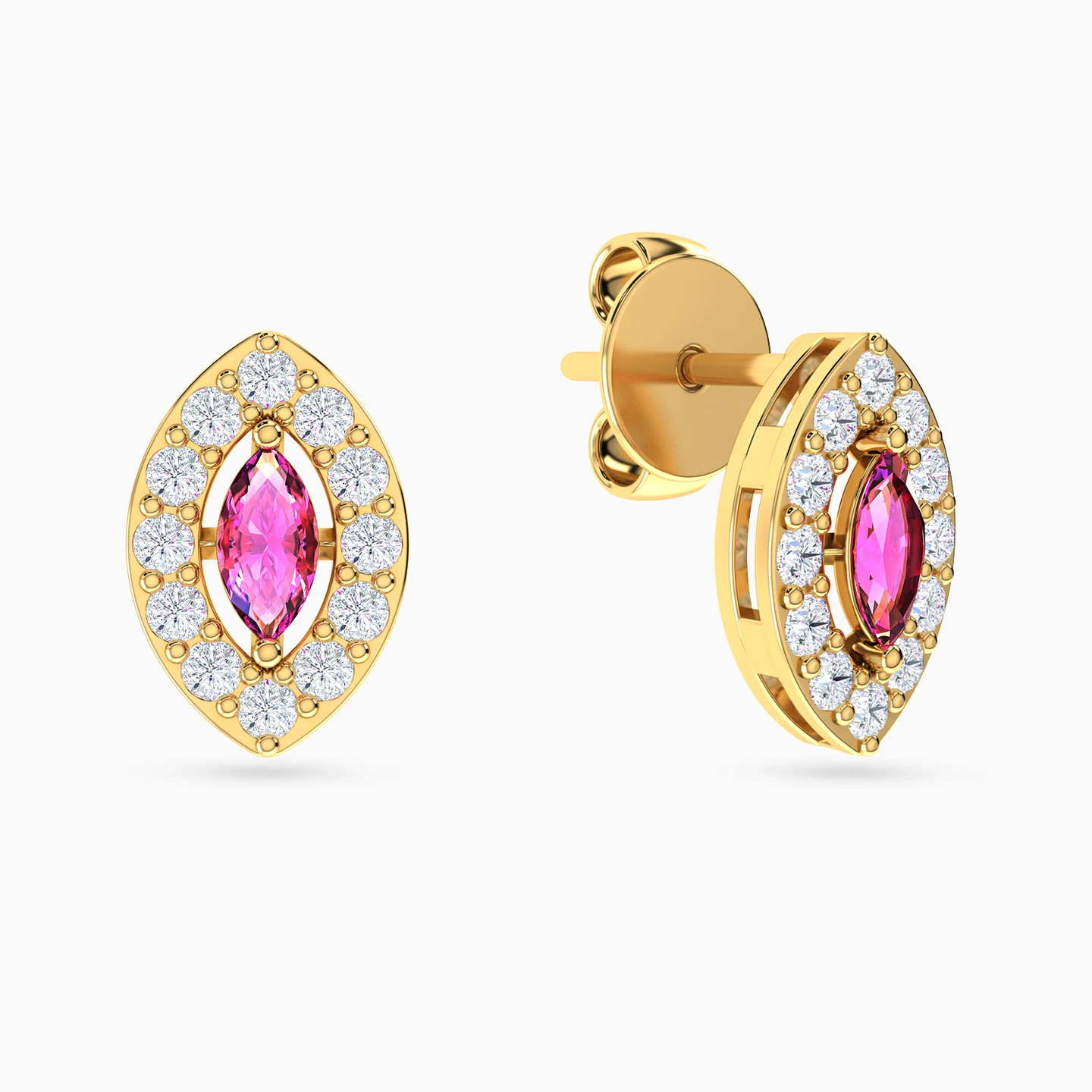 (طقم ذهب ماركيز عيار 18 قيراط مزين بحجر وردي (4 قطع