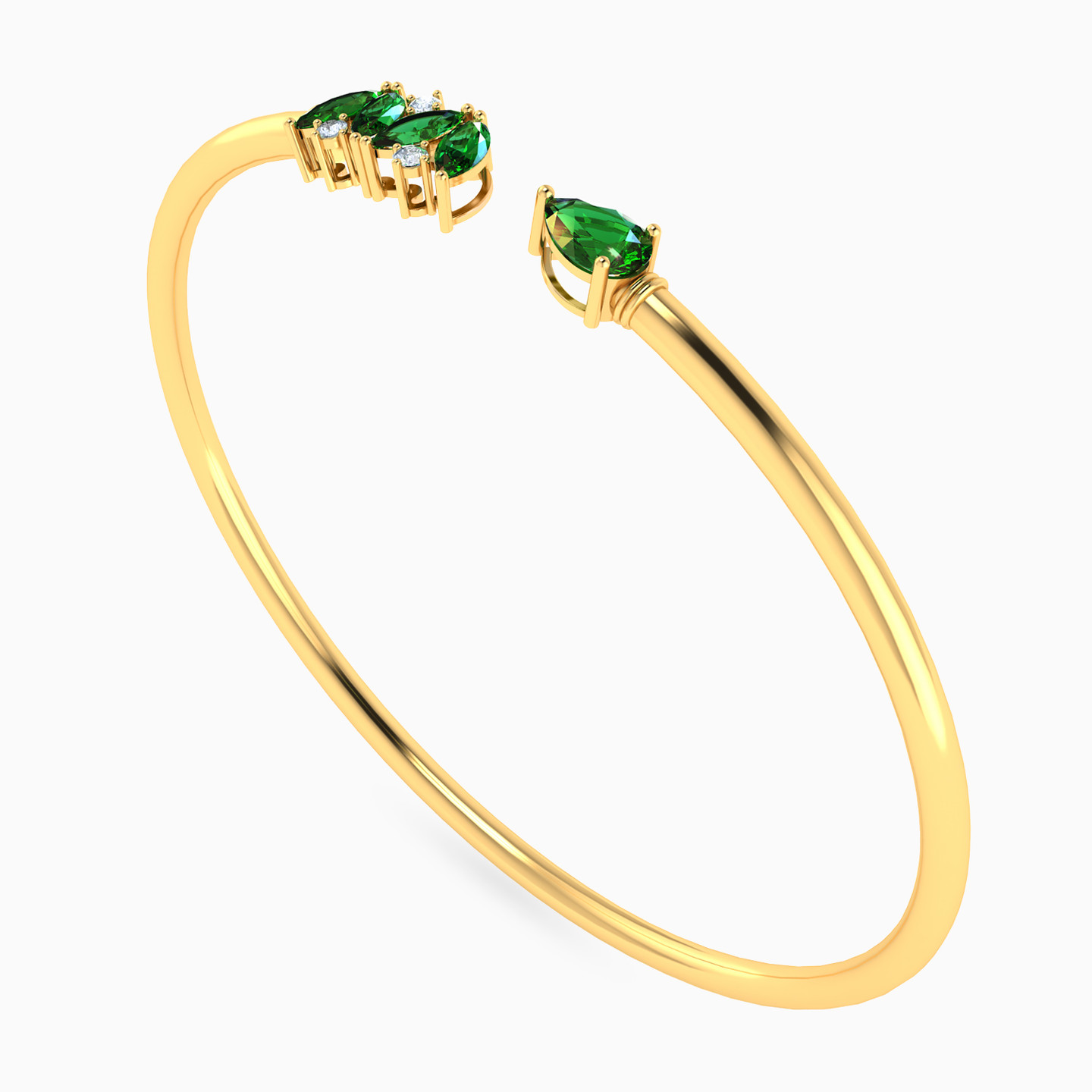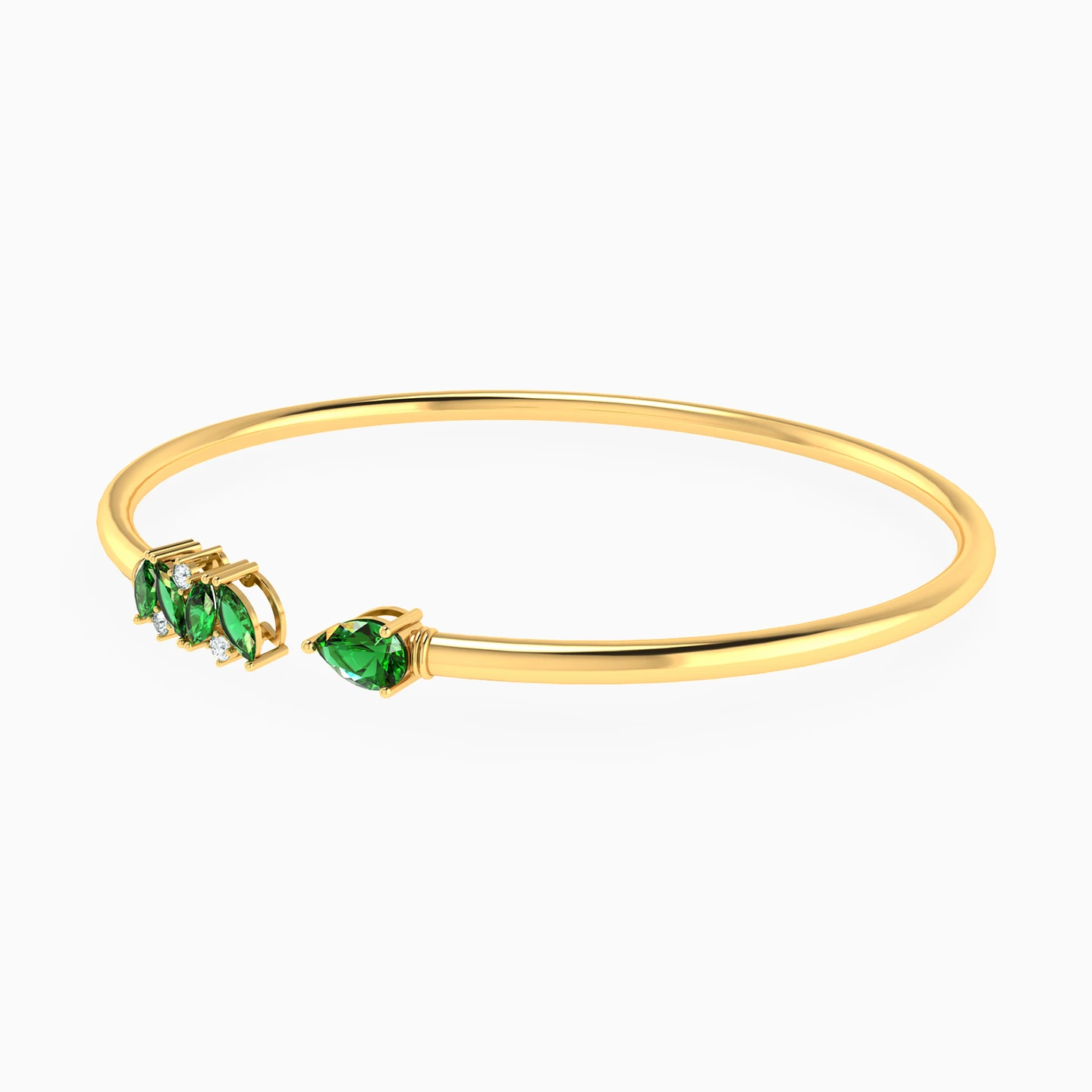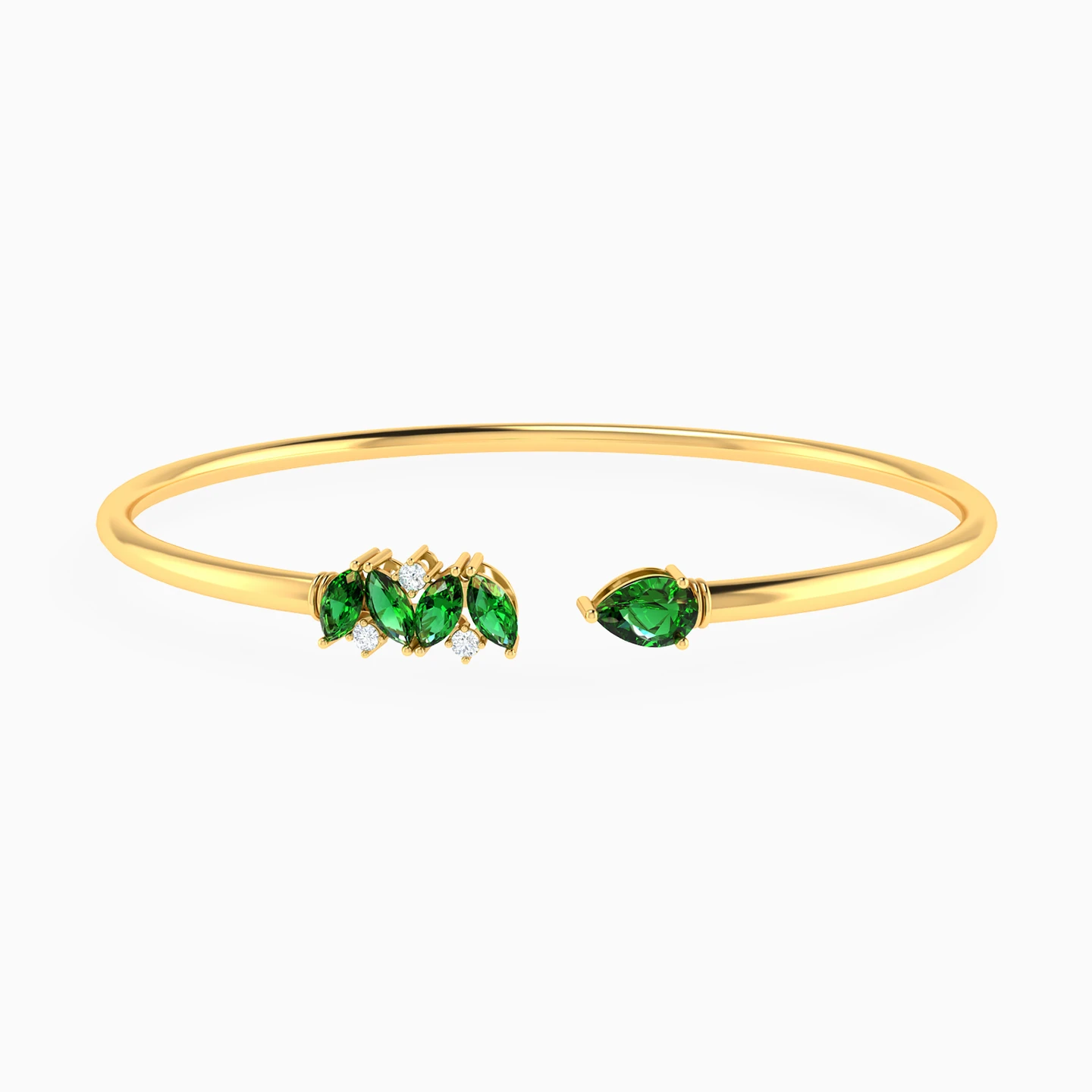 أسورة مفتوحة ذهب متعددة الأشكال عيار 18 قيراط مزينة بحجر أخضر