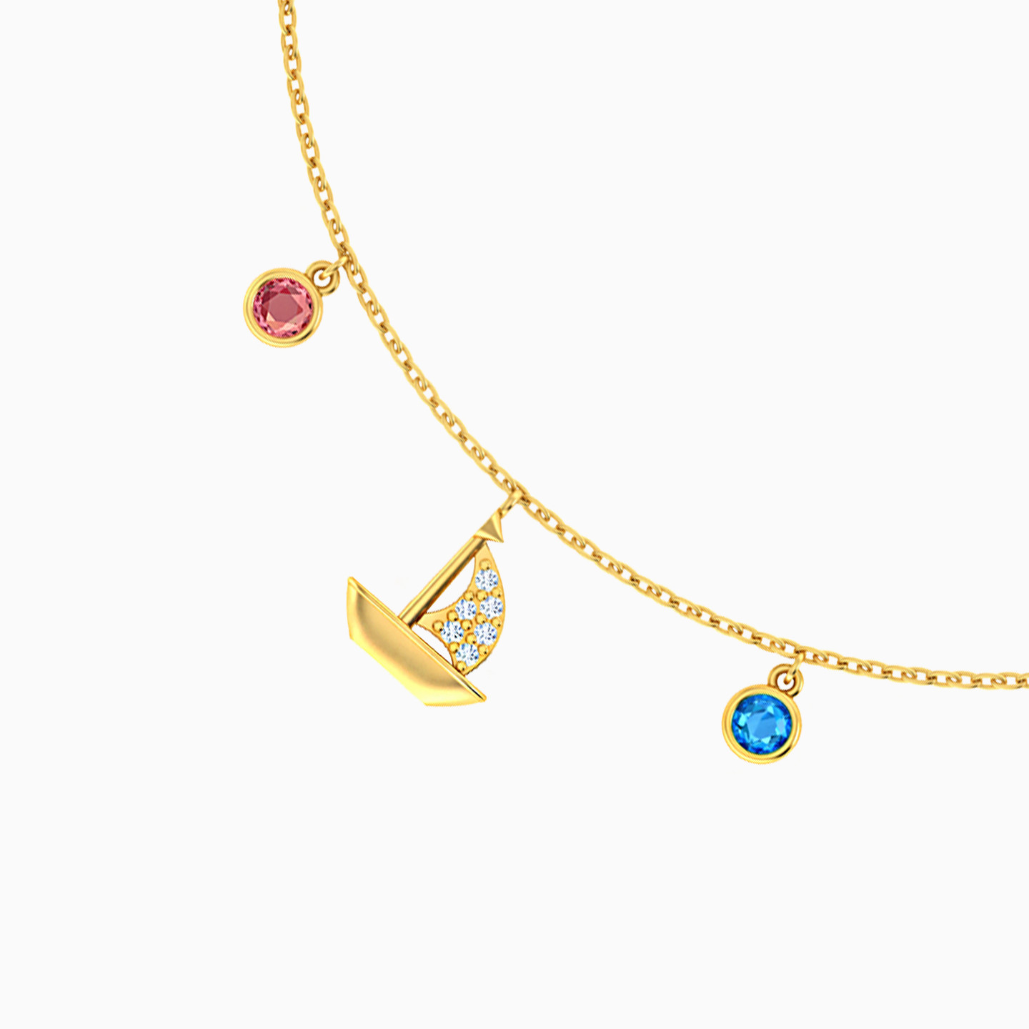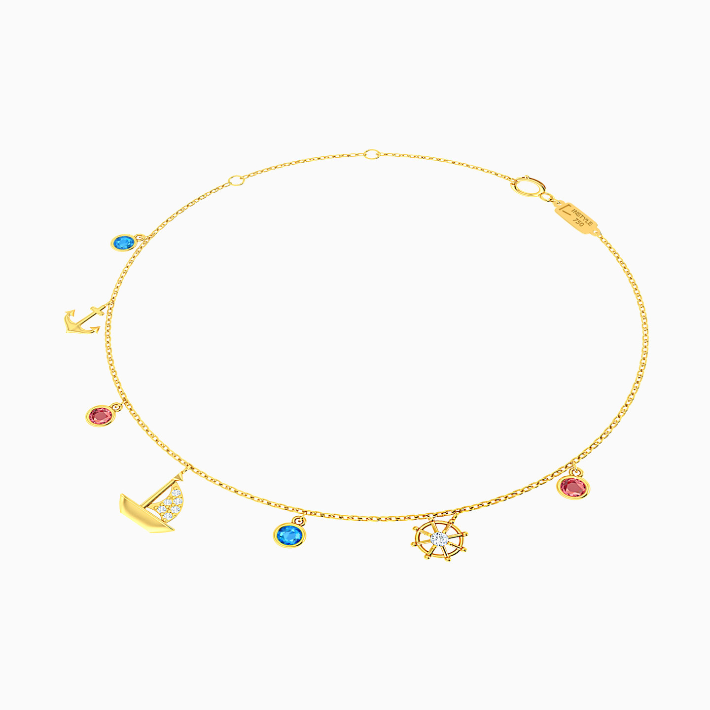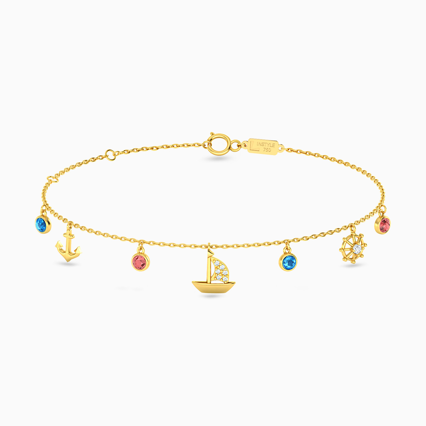 أسورة بسلسلة ذهب بألوان بحرية عيار 18 قيراط مزينة بالأحجار الملونة